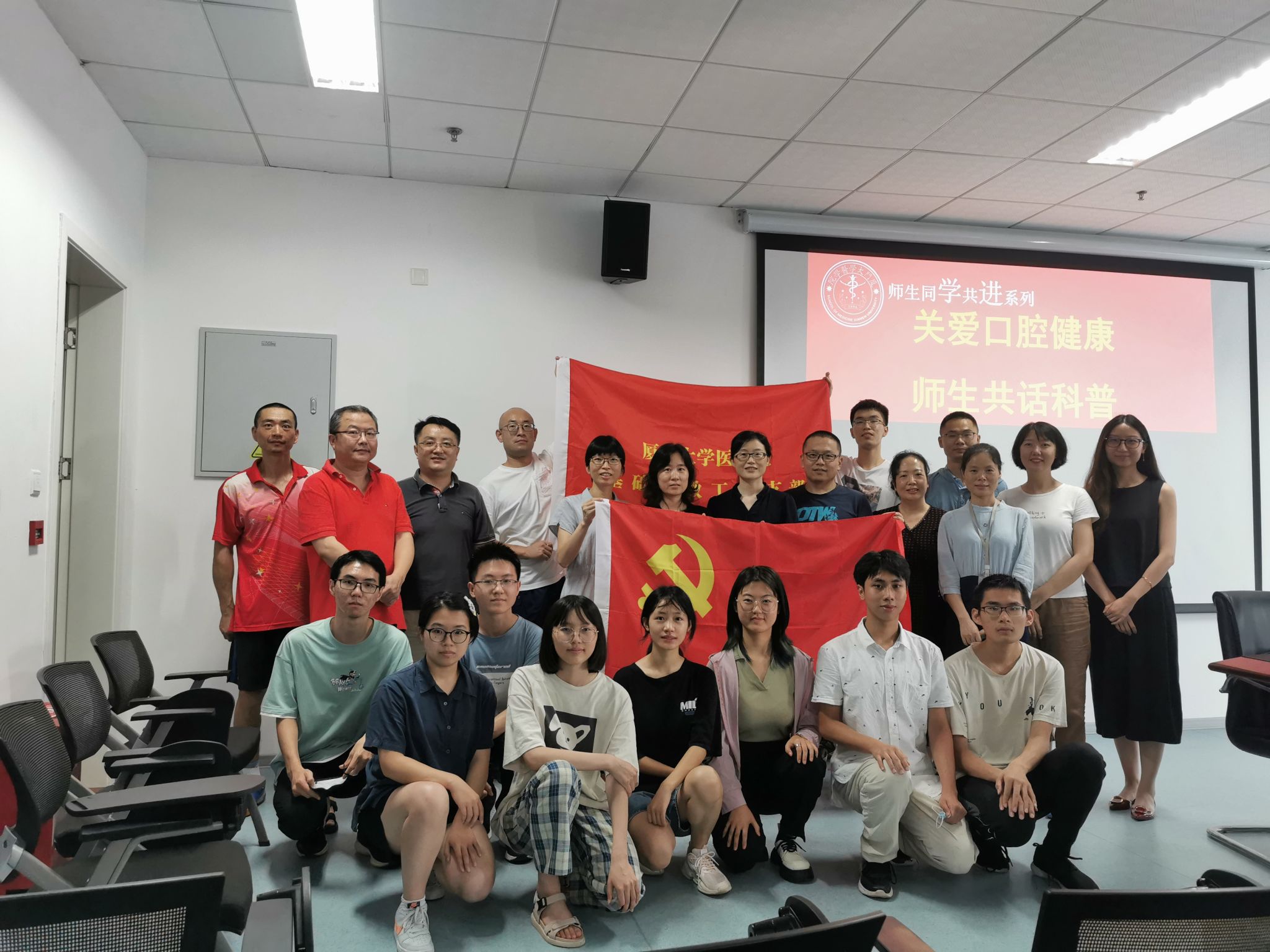 7月7日下午,医学院基础二教工党支部联合医学院口腔医学系开展“关爱口腔健康,师生共话科普”主题活动。基础二教工党支部全体成员、口腔医学系老师及科普志愿群的学生代表参加了此次活动。