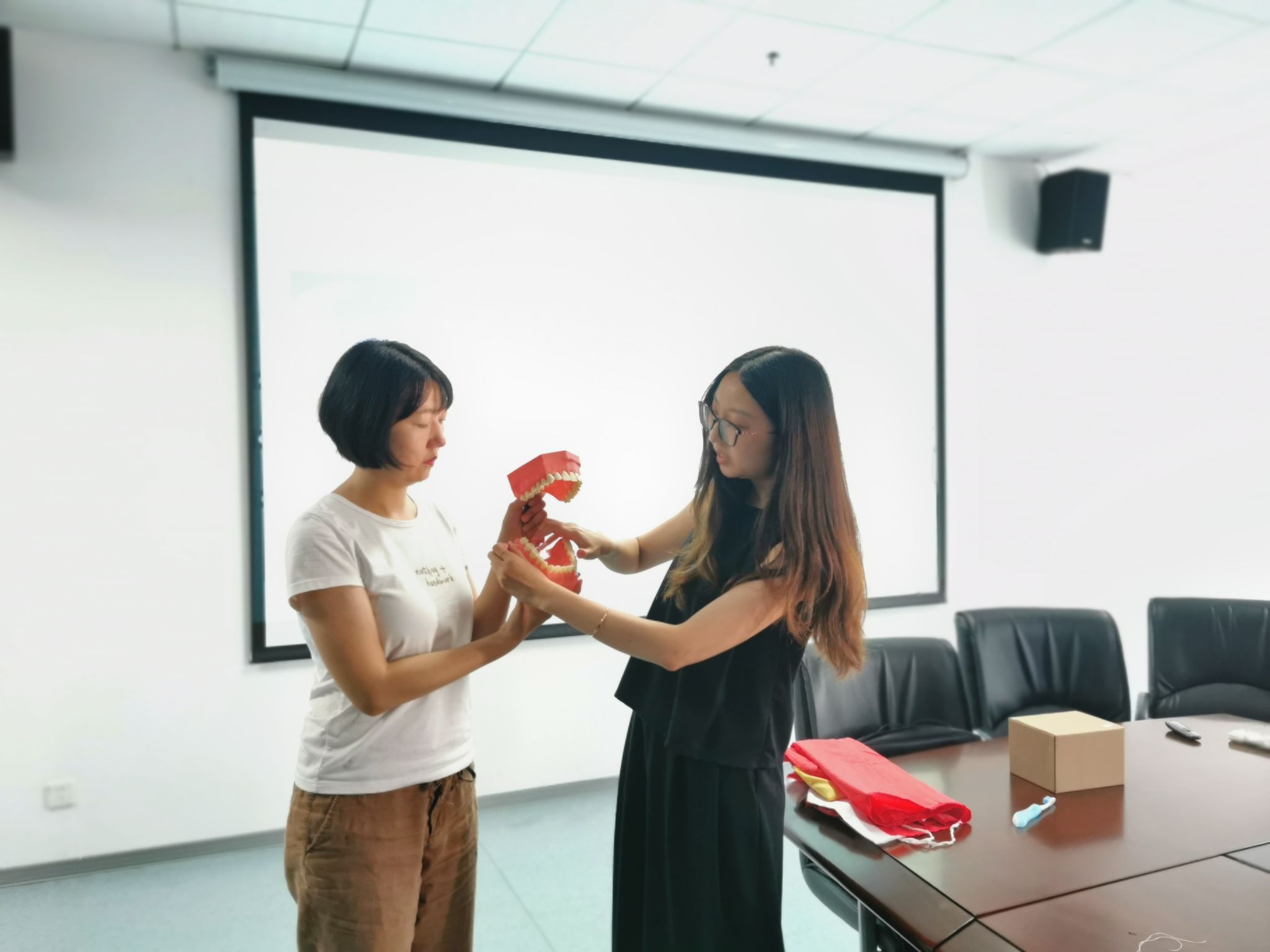 接下来口腔医学系黄霄红老师向参加活动的支部党员和学生代表介绍了口腔医学专业的办学情况、学科建设和人才培养情况。随后,医学口腔系新引进的副教授高诗倩老师开启了口腔健康小课堂。高老师毕业于香港大学牙医学院,是牙科公共卫生专业博士,多年来在一线开展口腔预防及口腔健康宣教工作,具有丰富的口腔健康知识科普经验。高老师用通俗易懂的语言向在座师生介绍了常见口腔疾病如龋病、牙周病等的预防和治疗方法,并现场示范了“巴氏刷牙法”。讲座后师生就共同关注的口腔健康问题如六龄牙窝沟封闭时间、牙齿根管治疗常见流程、洁牙必要性等展开热烈讨论。整场活动持续1个半小时,在热烈的掌声中圆满结束。