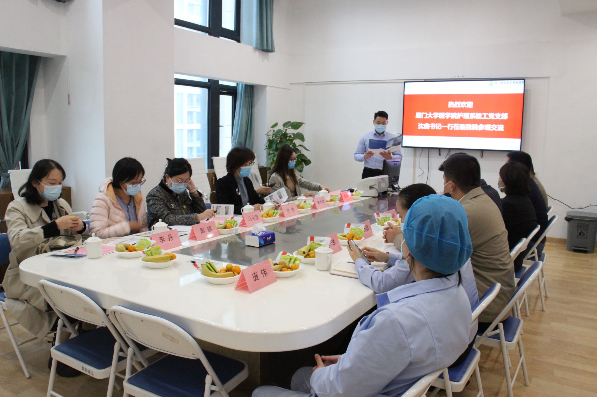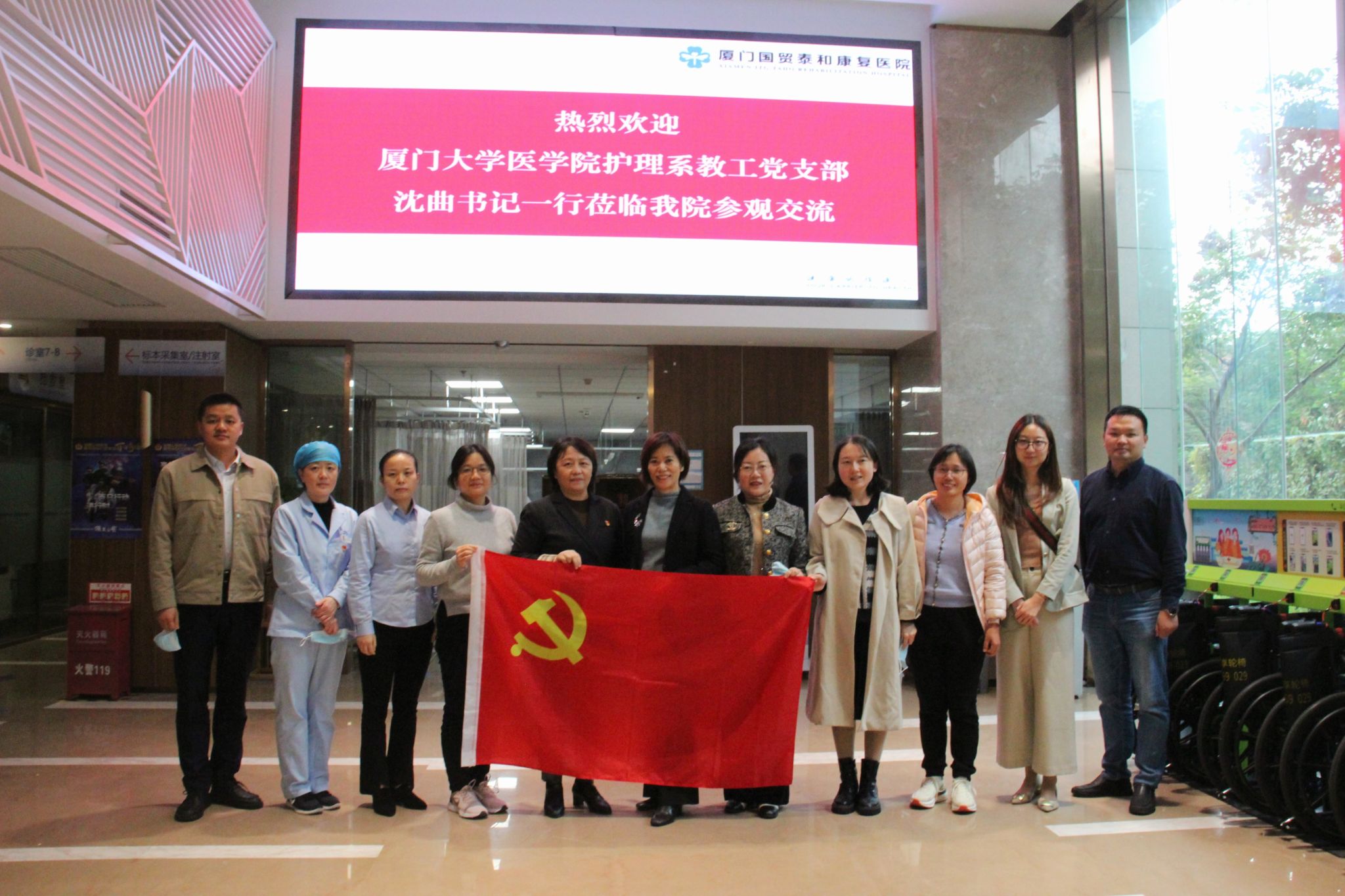 12月13日下午,厦门大学医学院护理系教工党支部党员代表来到厦门国贸泰和康复医院开展访问交流活动,同行参加的还有生命伦理中心常务副主任马永慧副教授、口腔医学系教师高诗倩副教授。厦门国贸泰和康复医院吕锦松总经理、牟蓉副院长、邓庆贤副院长、娄洋护理部副主任、庞伟治疗师长以及院方各个部门负责人热情接待一行并引导参观医院内部设置、介绍功能分区。