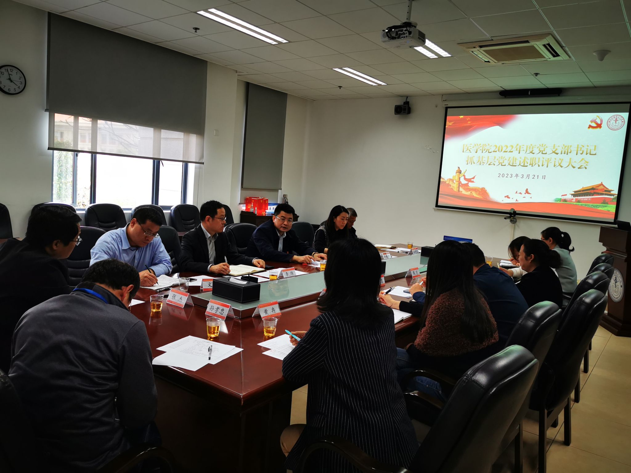 为进一步压紧压实党支部书记抓党建工作第一责任人责任,推动全面从严治党向基层延伸,切实增强基层党组织政治功能和组织功能,提升基层党建工作质量,3月21日下午,医学院2022年度党支部书记抓党建工作述职评议考核会在医学院爱礼楼103会议室召开。学院党委委员,师生党支部书记、支委,辅导员,党务秘书参加会议。会议由学院党委副书记辛晓丹主持。