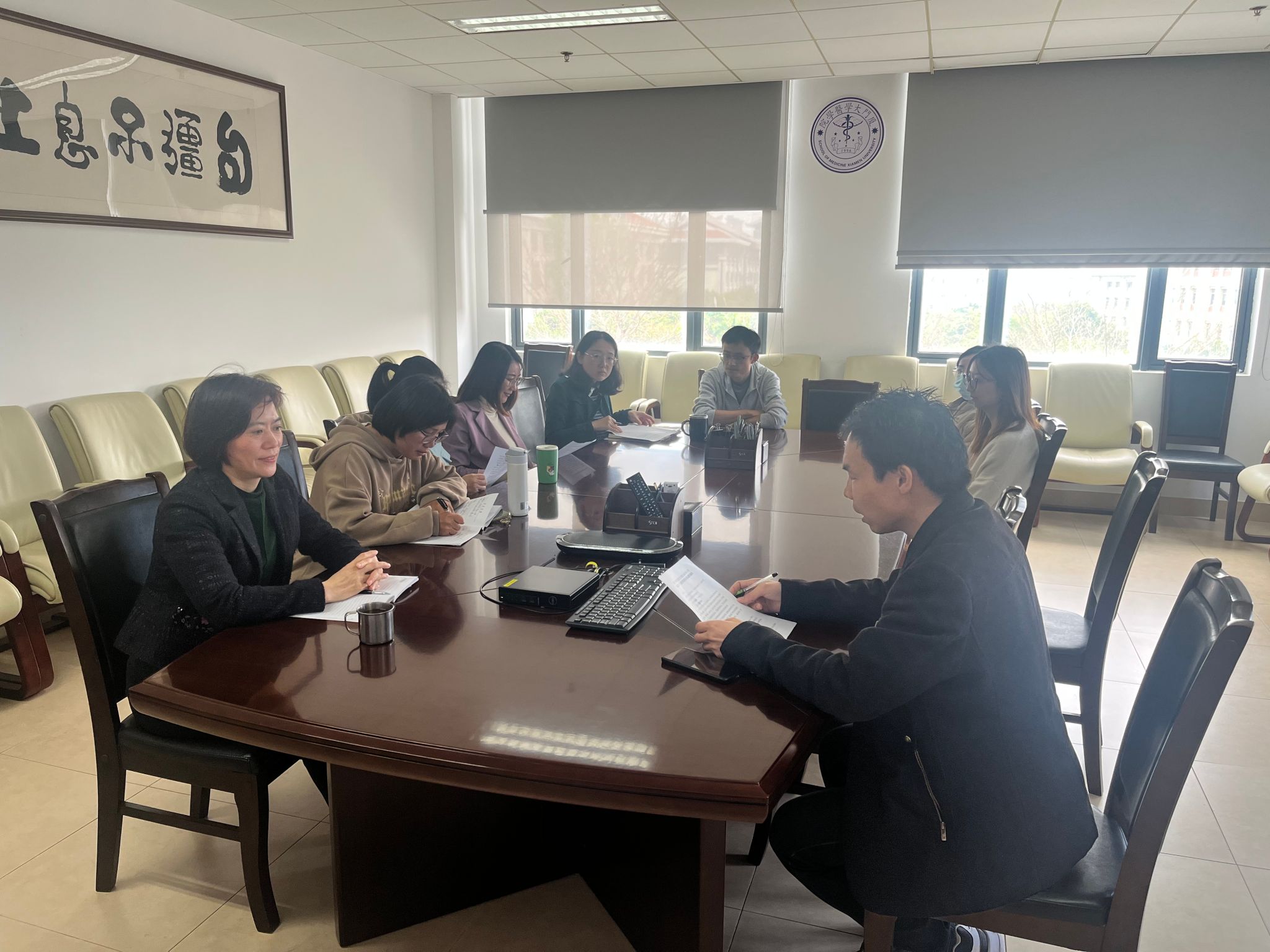 王瑞老师介绍了近期到空军军医大学出差时了解到的张华的事迹,24岁的大学生张华因为救助69岁掏粪老人而失去生命,十分令人动容。他指出,张华作为一个医学生,用自己的行动诠释了人的生命没有贵贱之分。高诗倩老师则谈到,面对当下的国际现状,要把“引进来,走出去”的交流渠道建立起来,加强正面交流,树立中国形象。马永慧老师从生命伦理学的角度出发,结合目前时政谈到危机下的生命伦理的现状。
