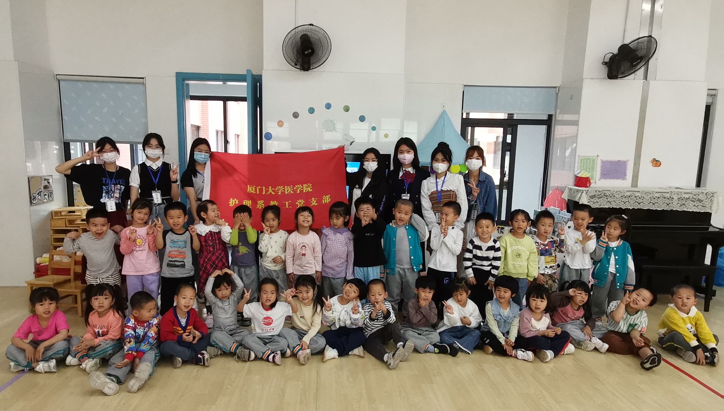 4月24日下午,厦门大学医学院护理系教工党支部在厦门大学幼儿园翔安分园开展健康宣教活动,本次活动由护理系教工党支部书记沈曲带队,护理系教工党支部学习组钟桃玲老师,厦门大学附属第一医院刘爽老师和护理系学生三十余人参加了本次活动