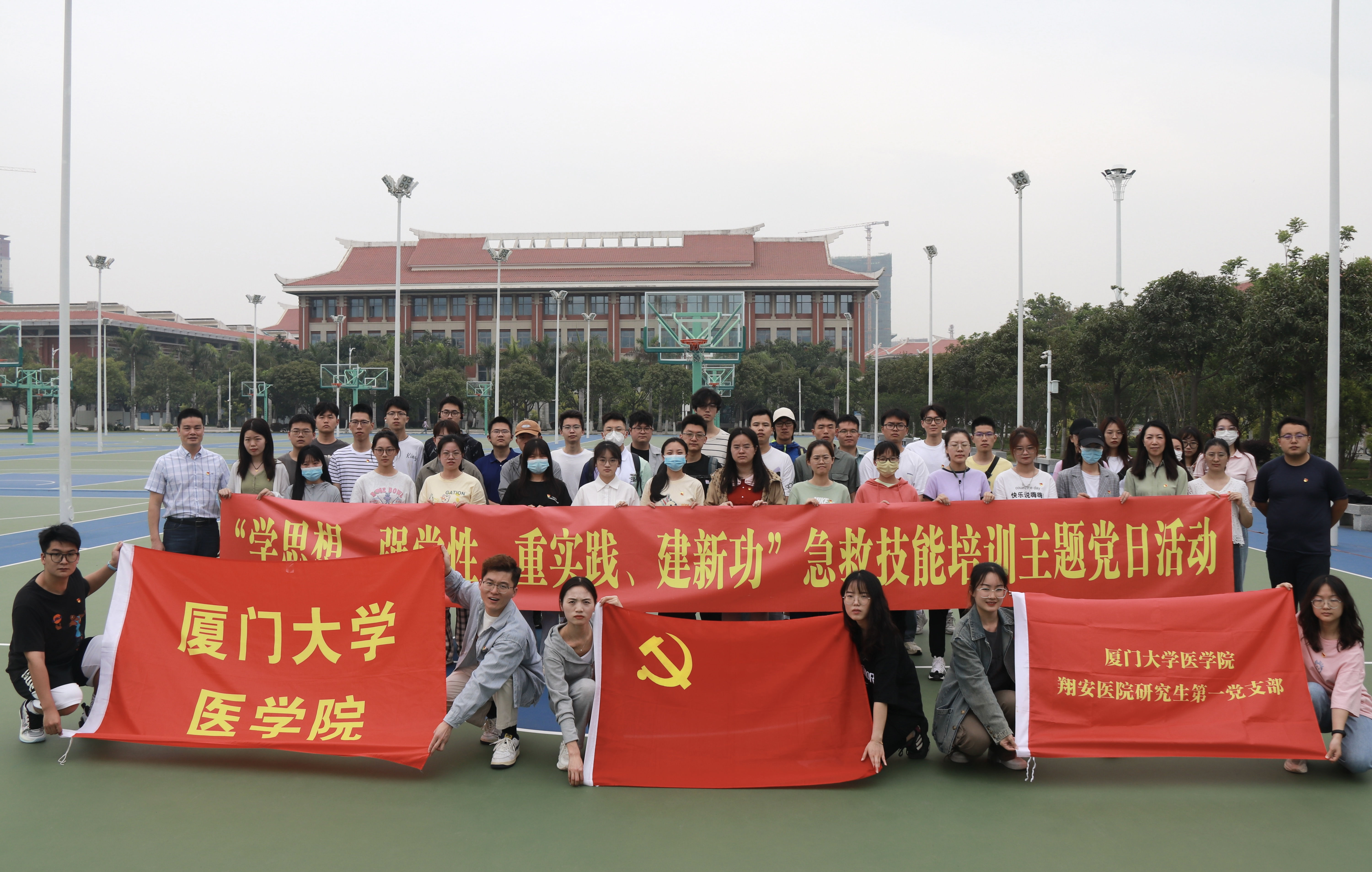 5月14日下午,由医学院翔安医院研究生第一党支部承办的“学思想、强党性、重实践、建新功”急救技能上球场主题党日活动在翔安校区一期篮球场顺利举办。医学院翔安医院研究生第一党支部全体党员、翔安校区各学院安全员、报名参训的师生共60余人参加了此次活动。医学院党委副书记辛晓丹,学生工作部(处)管理科副科长林建华,辅导员谢彦贞共同出席本次活动。