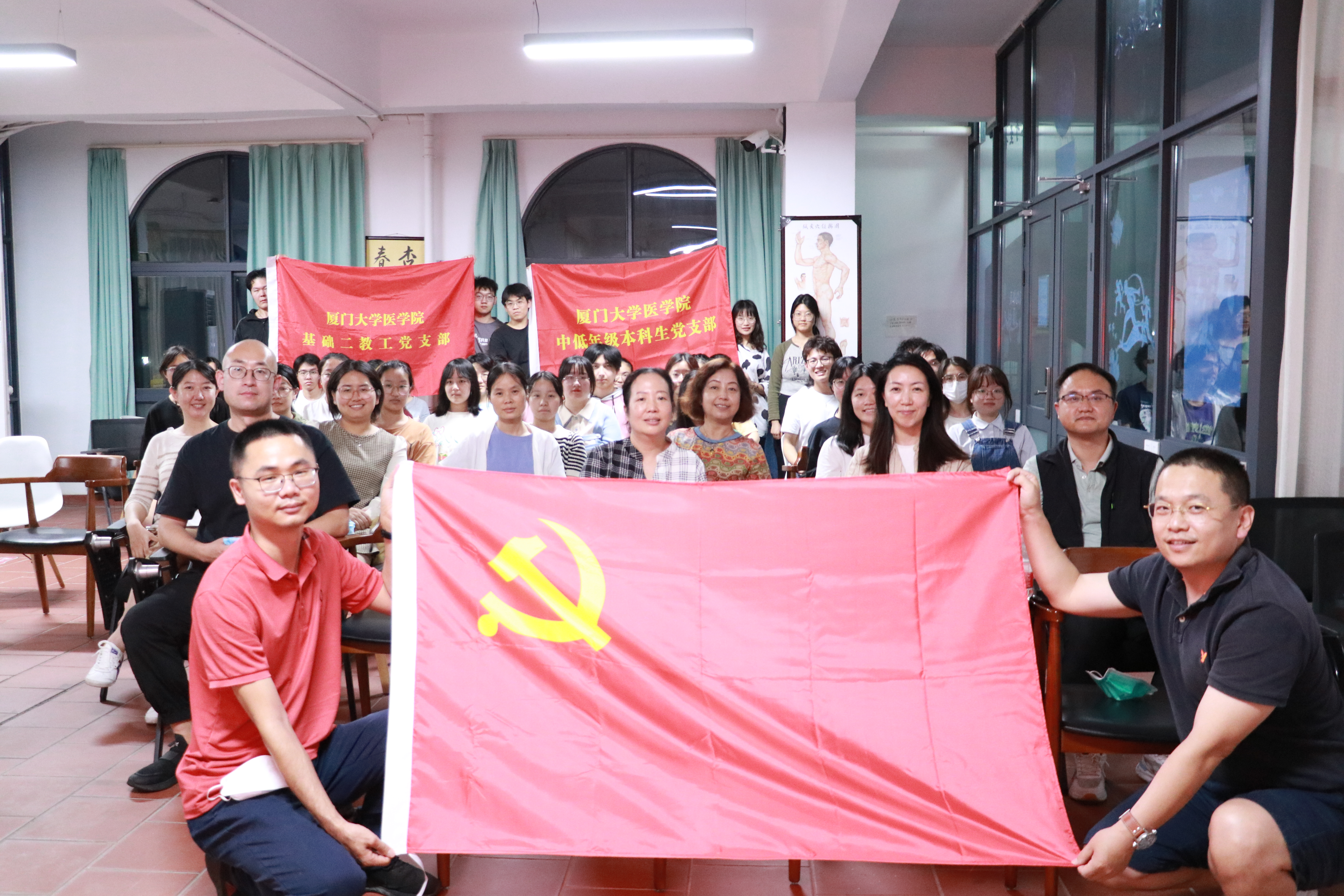 为深入开展学习贯彻习近平新时代中国特色社会主义思想主题教育,2023年5月25日晚,医学院基础二教工党支部联合医学院中低年级本科生党支部在翔安校区笃行宿舍园区“一站式”学生社区,以“聚焦健康中国,师生共话科普”为主题开展医学科普知识交流活动。活动由基础二教工党支部书记周宇和中低年级本科生党支部书记许洋共同组织。医学院党委副书记辛晓丹,以及两个支部近五十名党员、预备党员和入党积极分子参加本次活动。