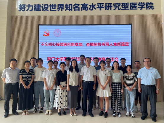 参与座谈的12名毕业生党员中,有的选择攀登学术高峰继续深造,有的选择扎根基层服务群众;有的选择救死扶伤守护人民健康。毕业生党员们回顾了在学期间的点点滴滴,回想起当初怀着理想与希望迈入了厦门大学,开启了一段美好又难忘的学习生涯,大家用青春特有的勇敢和浪漫在校园里书写属于自己的篇章,也收获了自己的成长。今天毕业生们完成了学业,站在新起点,即将奔赴新征程。党员同志们表达了对学校、对学院、对党组织的感激之情,并表示在新的学习、工作岗位和生活中将继续坚定理想信念,自觉把自己的一言一行与党的事业联系起来,时时处处与党一条心,用一生的行动履行入党誓词,践行“仁心仁术,止于至善”的院训精神,努力以优异的成绩回报党和母校的培养之情。