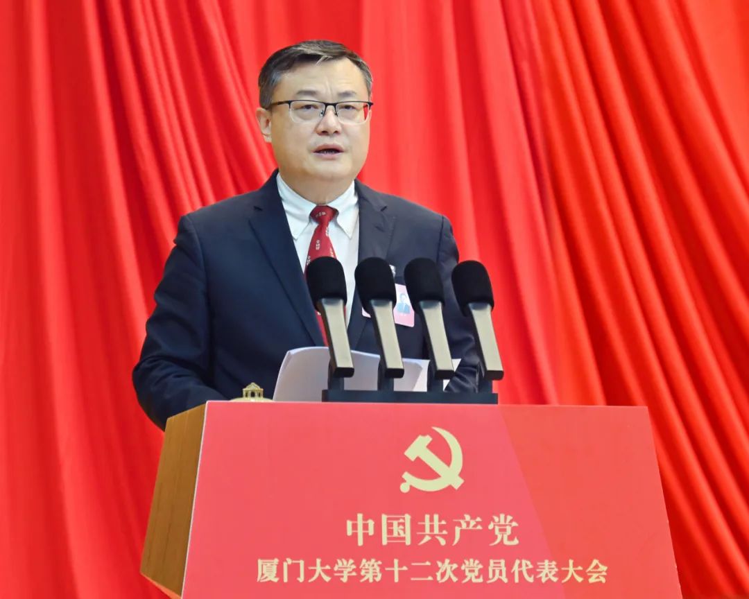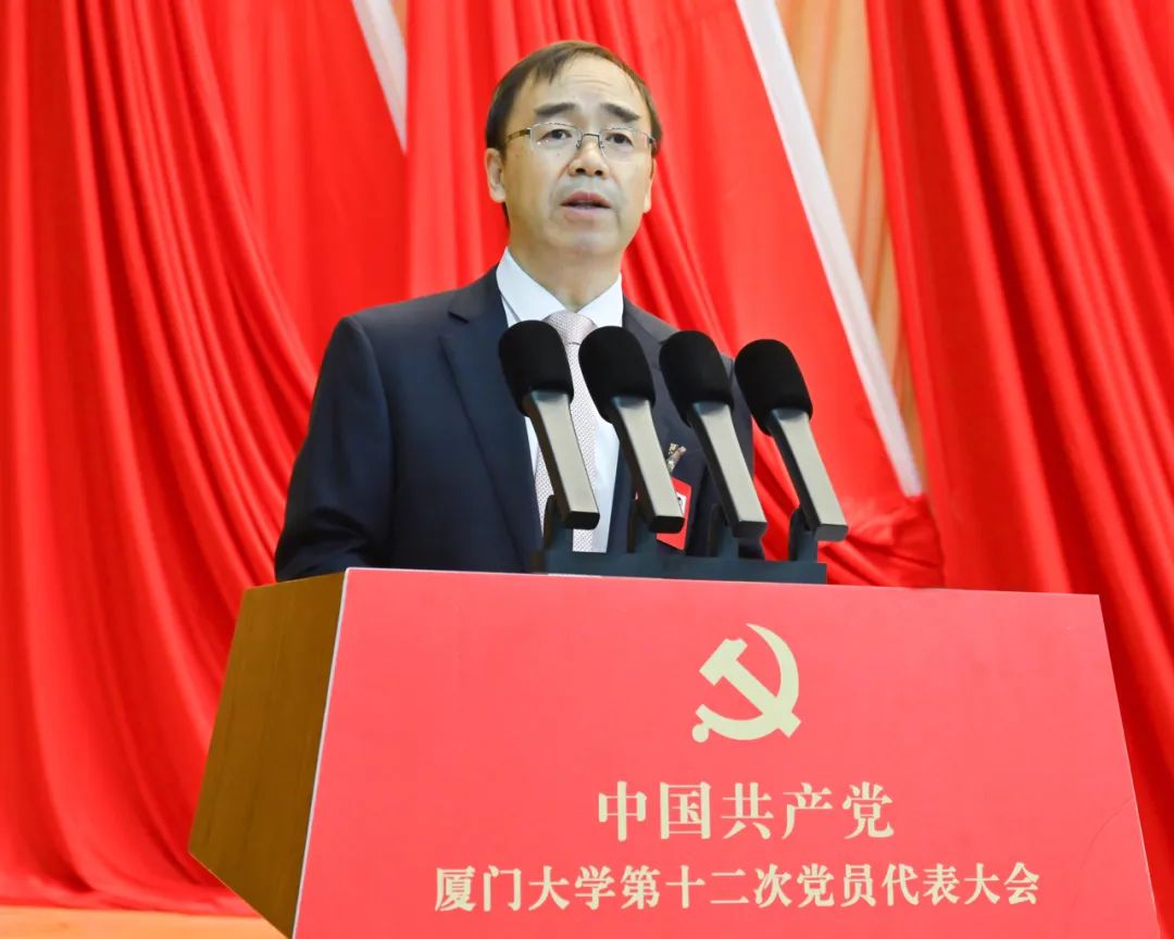 张荣同志代表中共厦门大学第十一届委员会向大会作题为《牢记嘱托 勇担使命 为与时俱进建设世界一流大学而团结奋斗》的报告。报告共分五个部分:一、深学笃行、砥砺奋进的五年;二、与时俱进建设世界一流大学的新使命新任务;三、坚持内涵式高质量发展,全方位推进一流大学建设;四、深化治理体系改革,塑造高质量发展新动能新优势;五、坚持党的全面领导,全面加强党的建设,为与时俱进建设世界一流大学提供坚强政治保障。