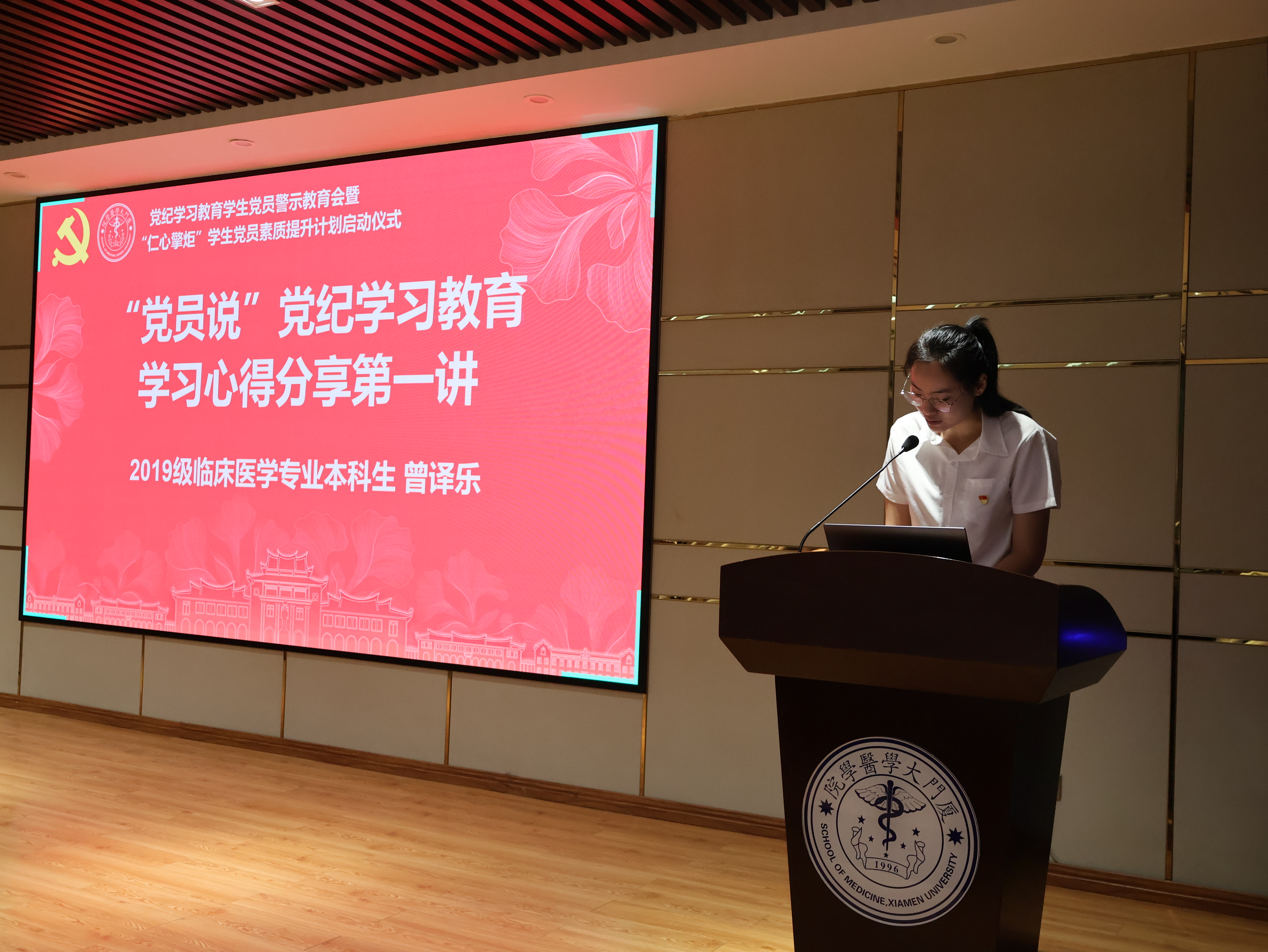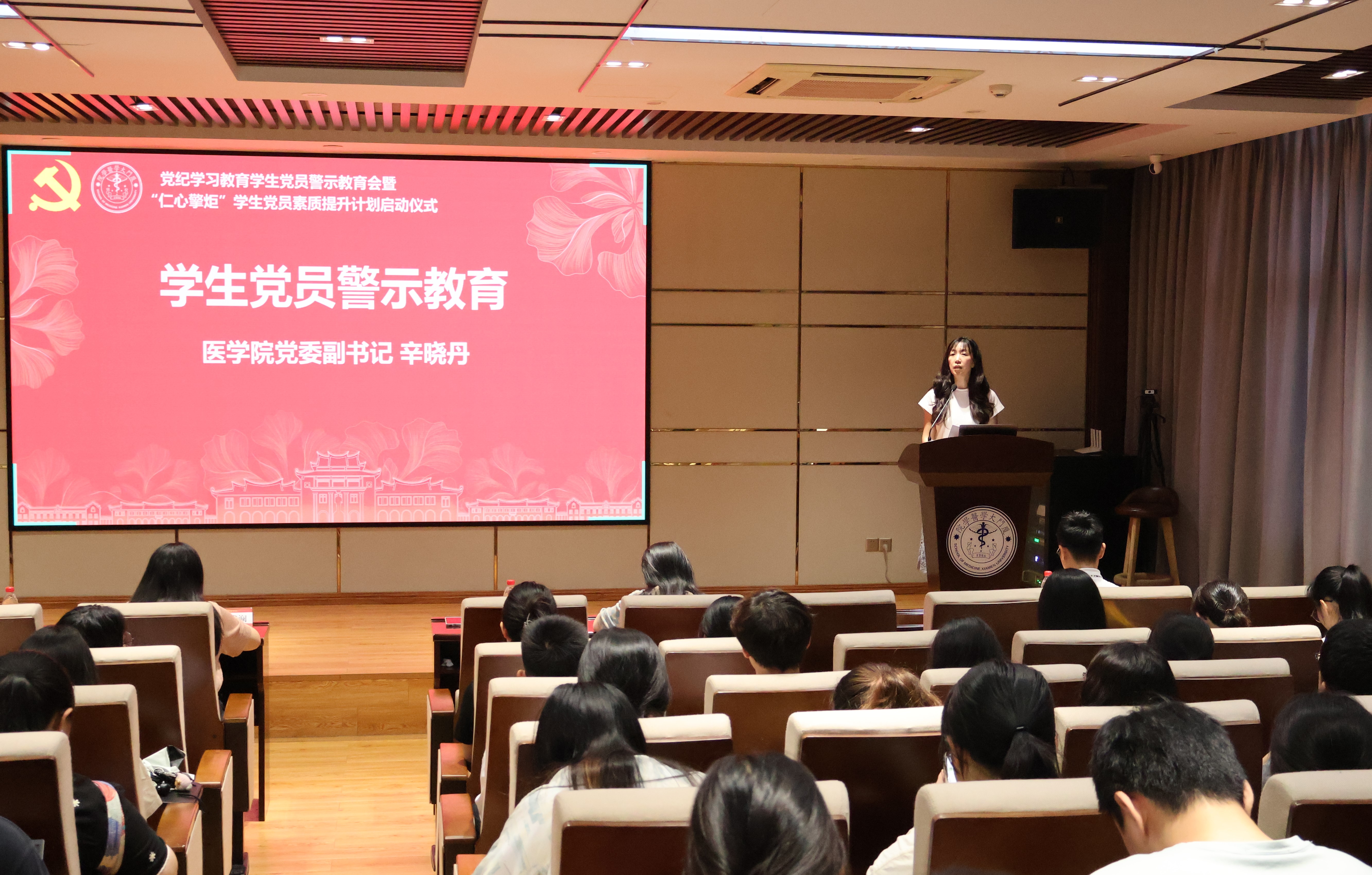 为深入学习领会习近平总书记关于全面加强党的纪律建设的重要论述,贯彻落实学校第十二次党代会精神,开展警示教育,进一步增强纪律意识、提高党性修养,6月28日,医学院党委在翔安校区成义楼102报告厅举办学生党员警示教育大会暨“仁心擎炬”学生党员素质提升计划启动仪式。会议通过“上一堂警示教育课、分享一次学习心得、领取一份成长记录卡、过一次‘政治生日’、重温一次入党誓词”等多种形式,引导学生党员深刻认识开展党纪学习教育的重大意义,真正做到学纪、知纪、明纪、守纪,推进党纪学习教育走深走实。
