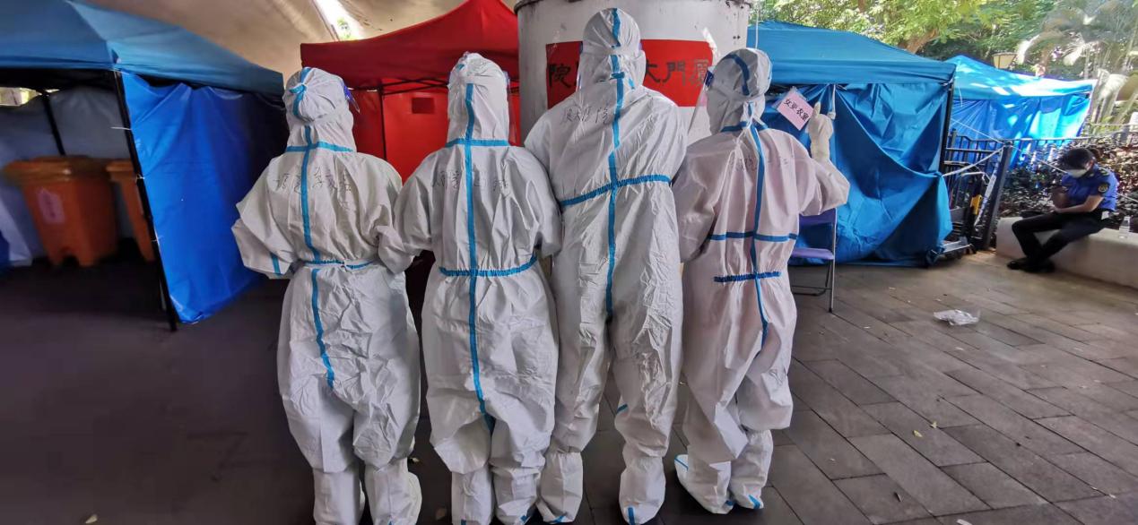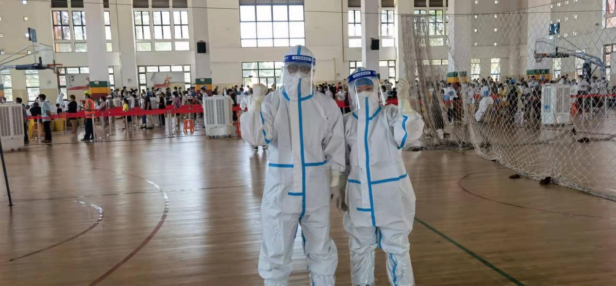9月20日清晨,志愿者老师们在翔安医院进行培训后,立刻身着密不透风的防护服,全副武装地奔赴各个核酸采集点。胡庆中老师赶赴翔安区金海社区浦西采集点采样,工作至晚上9点多结束;黄小花老师与翔安医院的医生们一起分配到翔安中学的核酸采样点进行核酸采样;王泽恩老师前往翔安第一实验小学采集点,该点采集人数近1万7千人;李文君老师更是于9月22日和9月25日两次参加厦门市思明区第四次和五次在成功大道桥底下点的核酸检测采样。