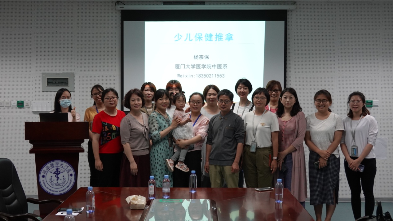 科学生活,健康相伴,为了增加医学院教职工关于小朋友的健康护理知识,呵护孩子健康快乐地成长,2021年5月10日下午4点半,厦门大学医学院工会、妇女委员会联合组织举办的小儿推拿培训讲座在医学院成伟楼402会议室成功举办,医学院女教职工代表20人参加了本次讲座。