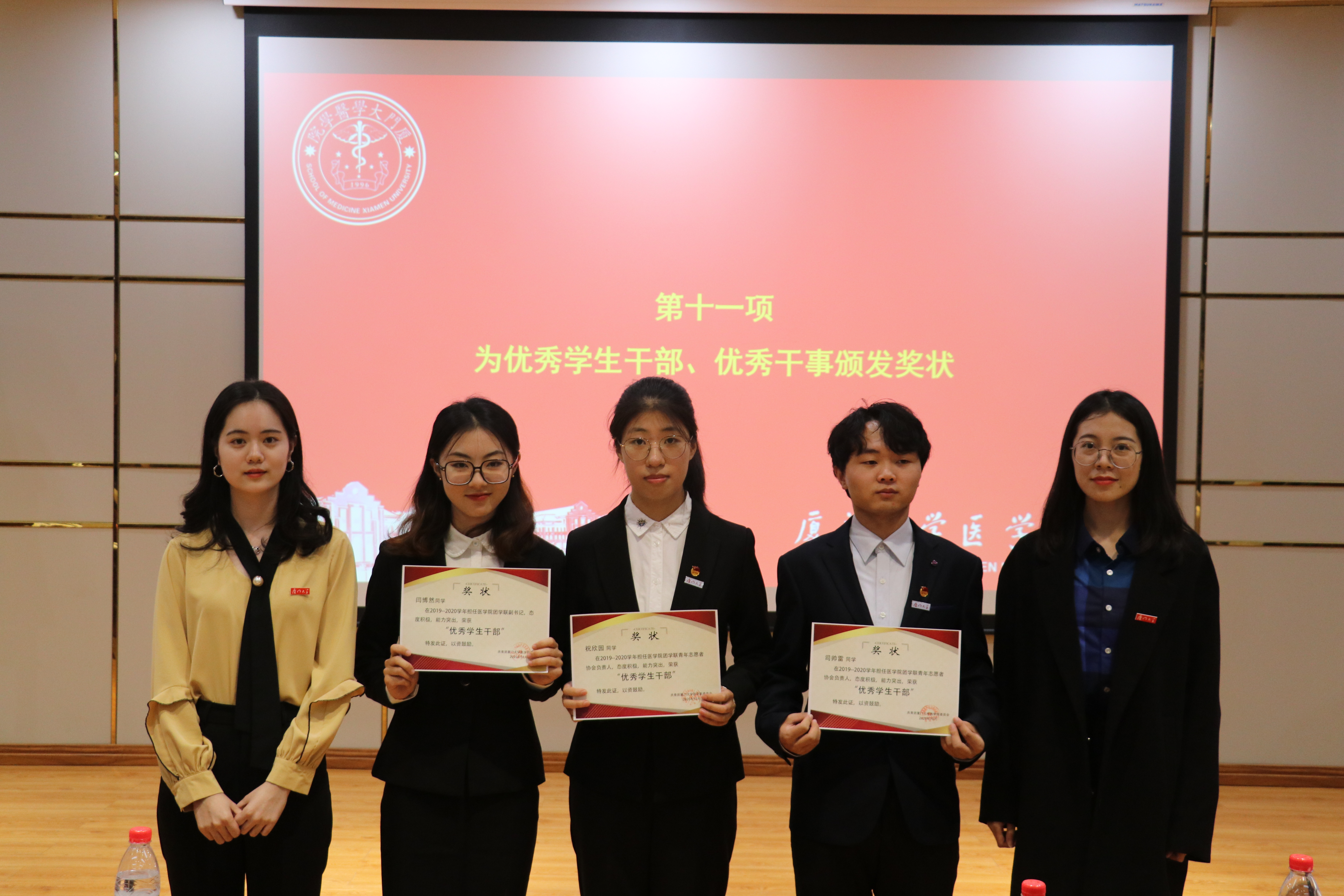 全体代表审议并通过了院第二十二届学生会主席团成员陈明翼所作医学院第二十二届学生委员会工作报告,大会通过无记名投票方式选举产生新一届学生会和团总支主席团,并为2019-2020学年院优秀学生干部颁奖,为院第二十二届学生会成员颁发任职证书。