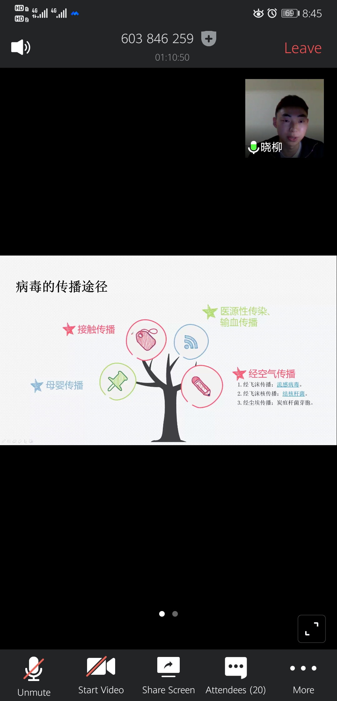 为打赢疫情阻击战,引导广大师生科学防控,提升新型冠状病毒肺炎预防意识和能力,守护学生的生命安全和身心健康,4月7日至9日,医学院护理系教工党支部组织护理系2017、2018级学生通过线上平台腾讯会议和钉钉进行网络科普健康教育活动。