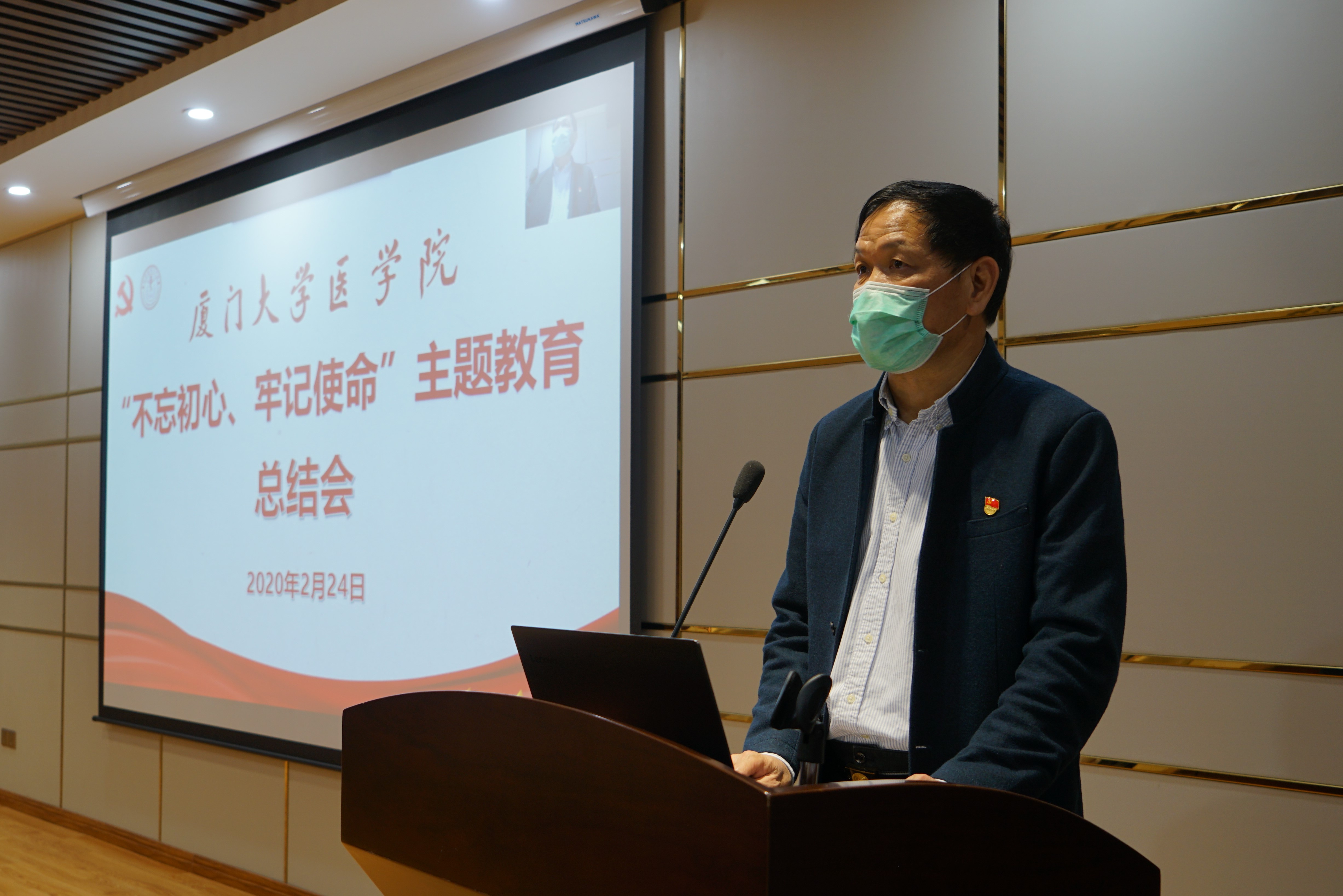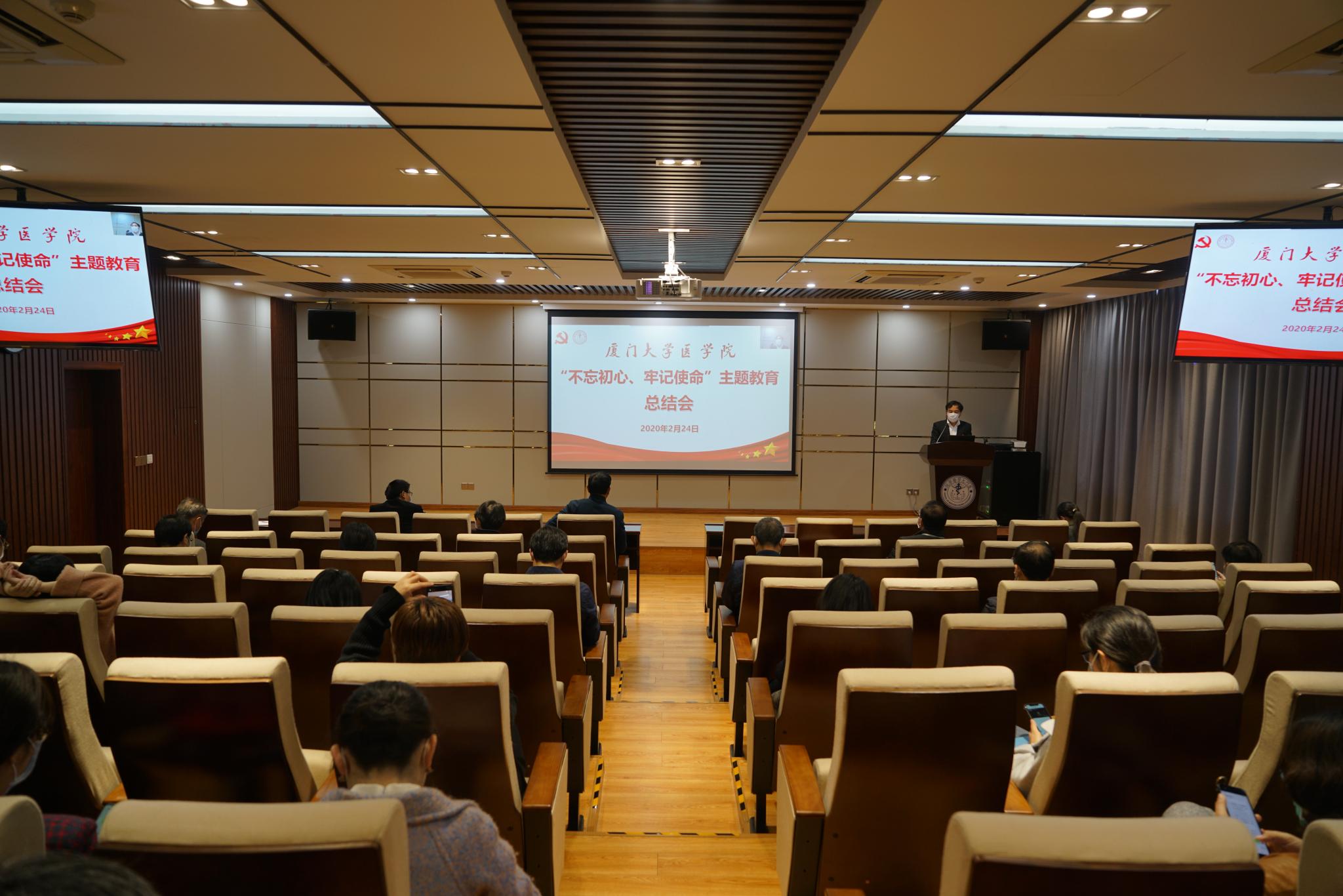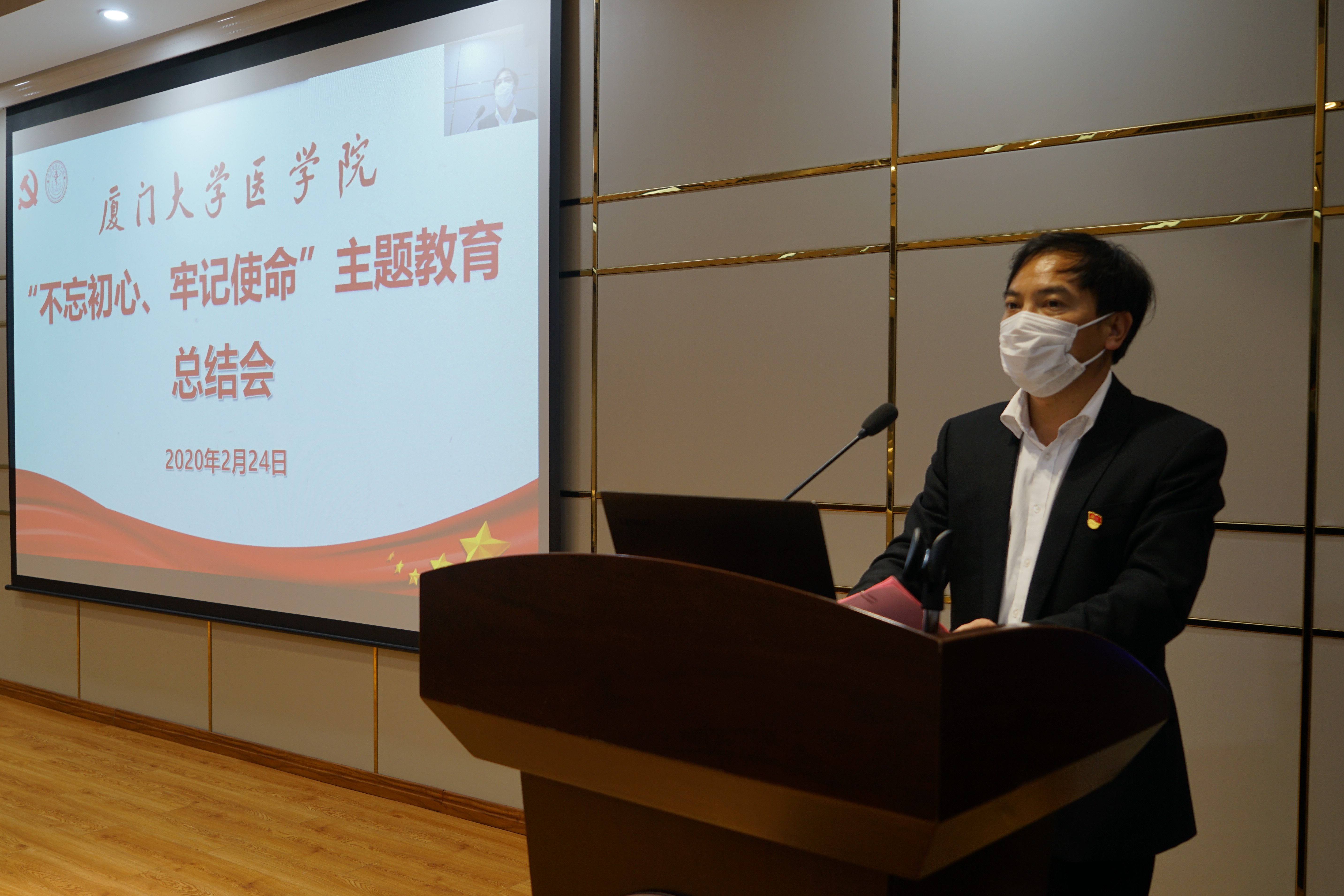 2月24日下午,厦门大学医学院“不忘初心、牢记使命”主题教育总结会在成义楼102报告厅及线上直播同步举行。校党委第七巡回指导组组长洪永强、成员高斌、崔庆炜,医学院主题教育领导小组成员、党政领导班子成员、系部中心负责人、教师党支部书记及支委、学生党支部书记、工青妇组织负责人、党员及师生代表等参加了会议。