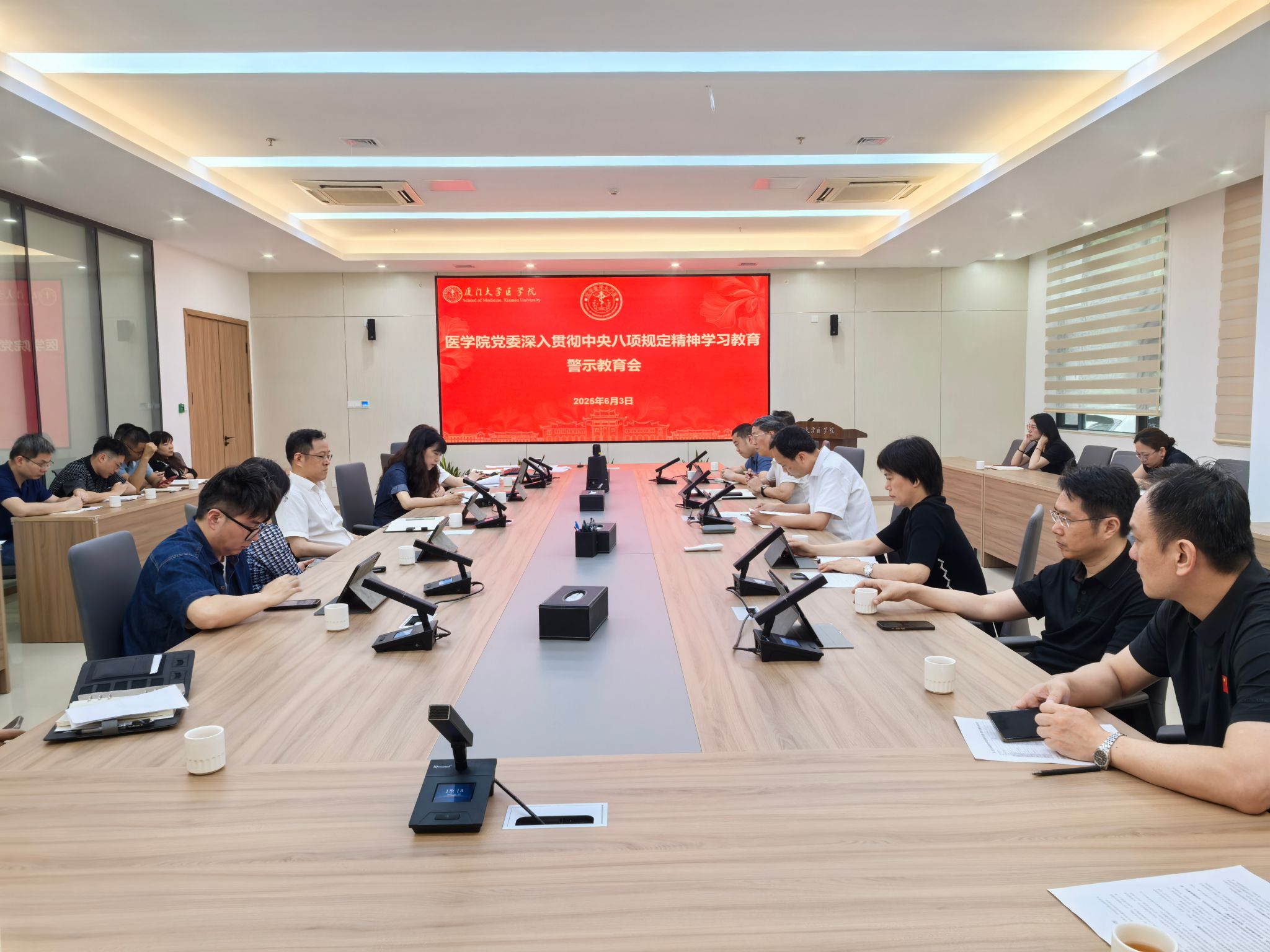 6月3日下午,医学院召开深入贯彻中央八项规定精神学习教育警示教育会,传达3日上午学校警示教育会精神,通报违反中央八项规定及其实施细则精神典型案例并进行深刻剖析,强化警示震慑,推动以案促改促治。学院党委书记李峰主持会议。