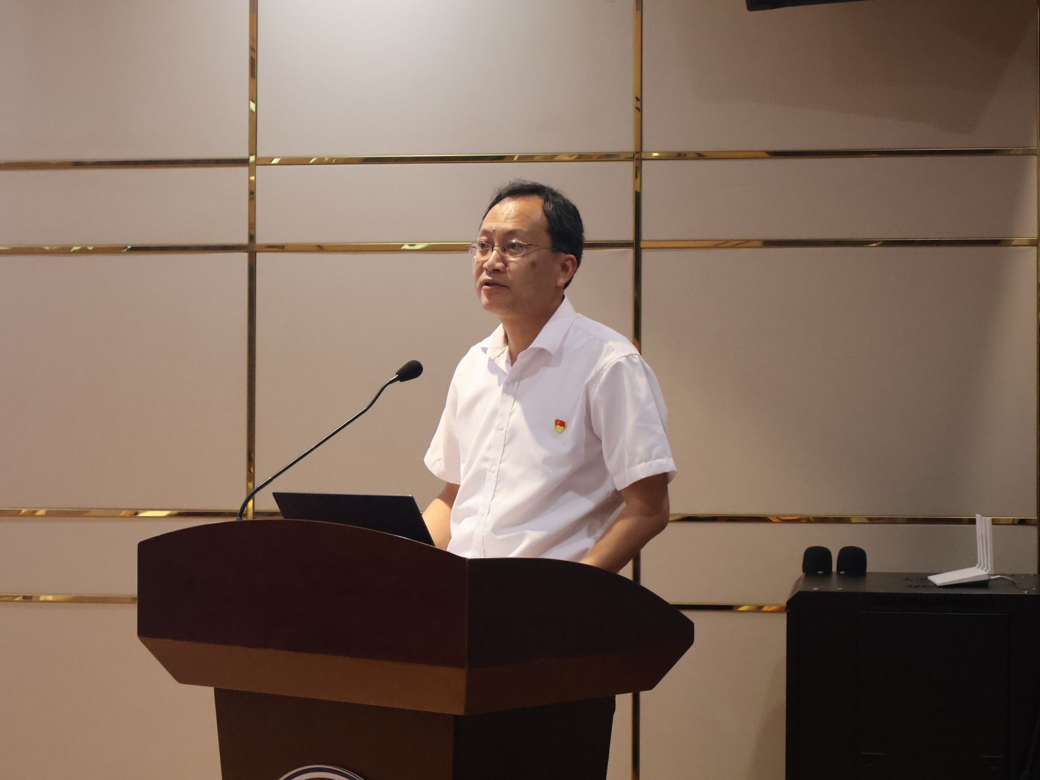 随后,李峰以《精准医学施策 全面深化改革 建设温暖集体》为题讲授专题党课,他回顾了两年来学院党建工作的总体情况,指出了学院党委团结带领师生员工,认真学习贯彻习近平新时代中国特色社会主义思想,深入落实立德树人根本任务,在“精准医学施策 推动融合发展”、“全面深化改革 集聚发展动能”、“深耕仁心文化 建设温暖集体”等方面取得的可喜成效。他强调,学院全体党员要坚定理想信念,筑牢信仰之基,将学习成果转化为推动工作的强大力量;要强化担当作为,勇挑发展重担,在学院改革发展重大任务中奋勇争先,充分发挥党员的先锋模范作用;要锤炼纪律作风,勇毅自我革新,坚定不移执行中央八项规定及其实施细则精神,严守纪律红线与规矩底线。