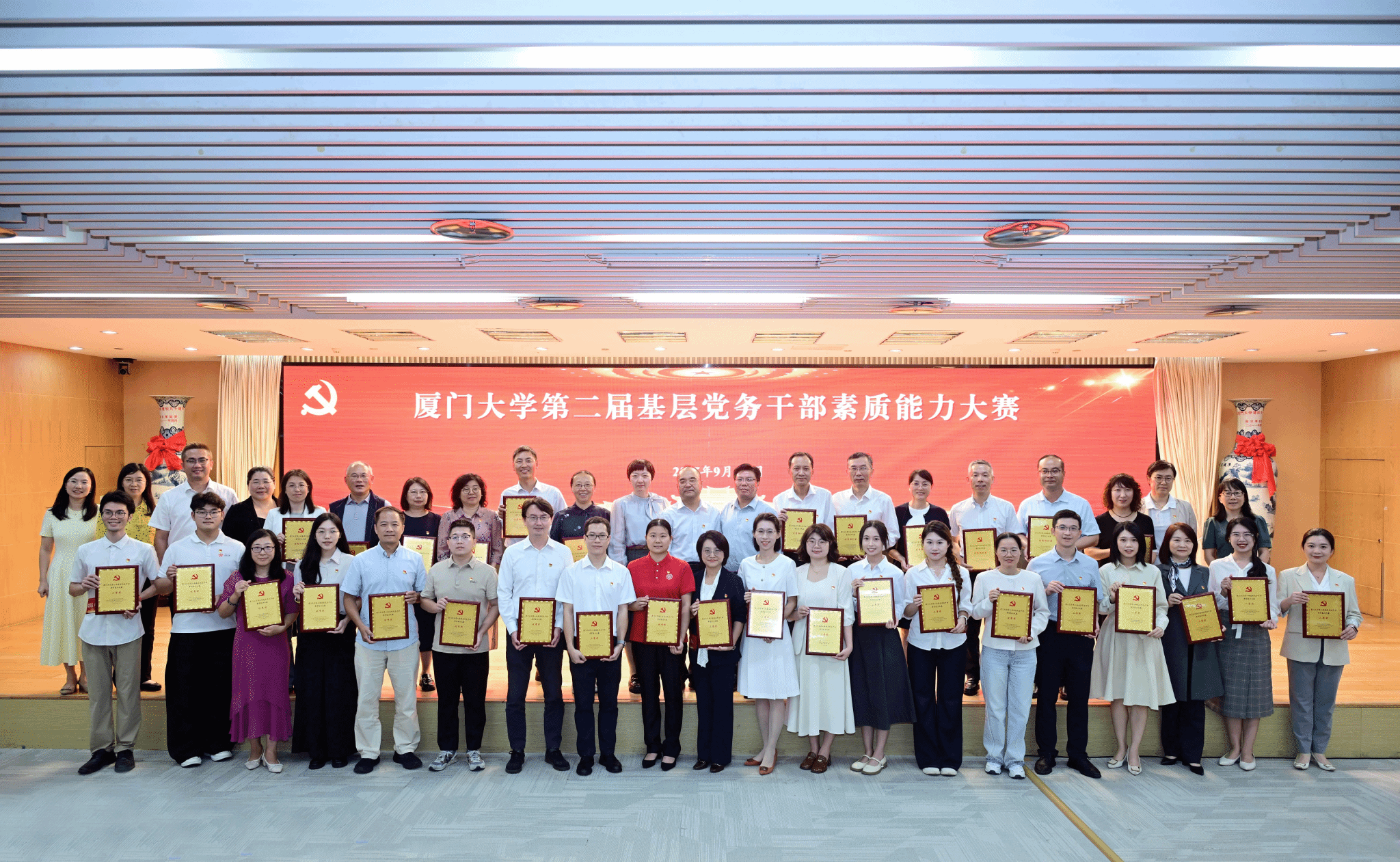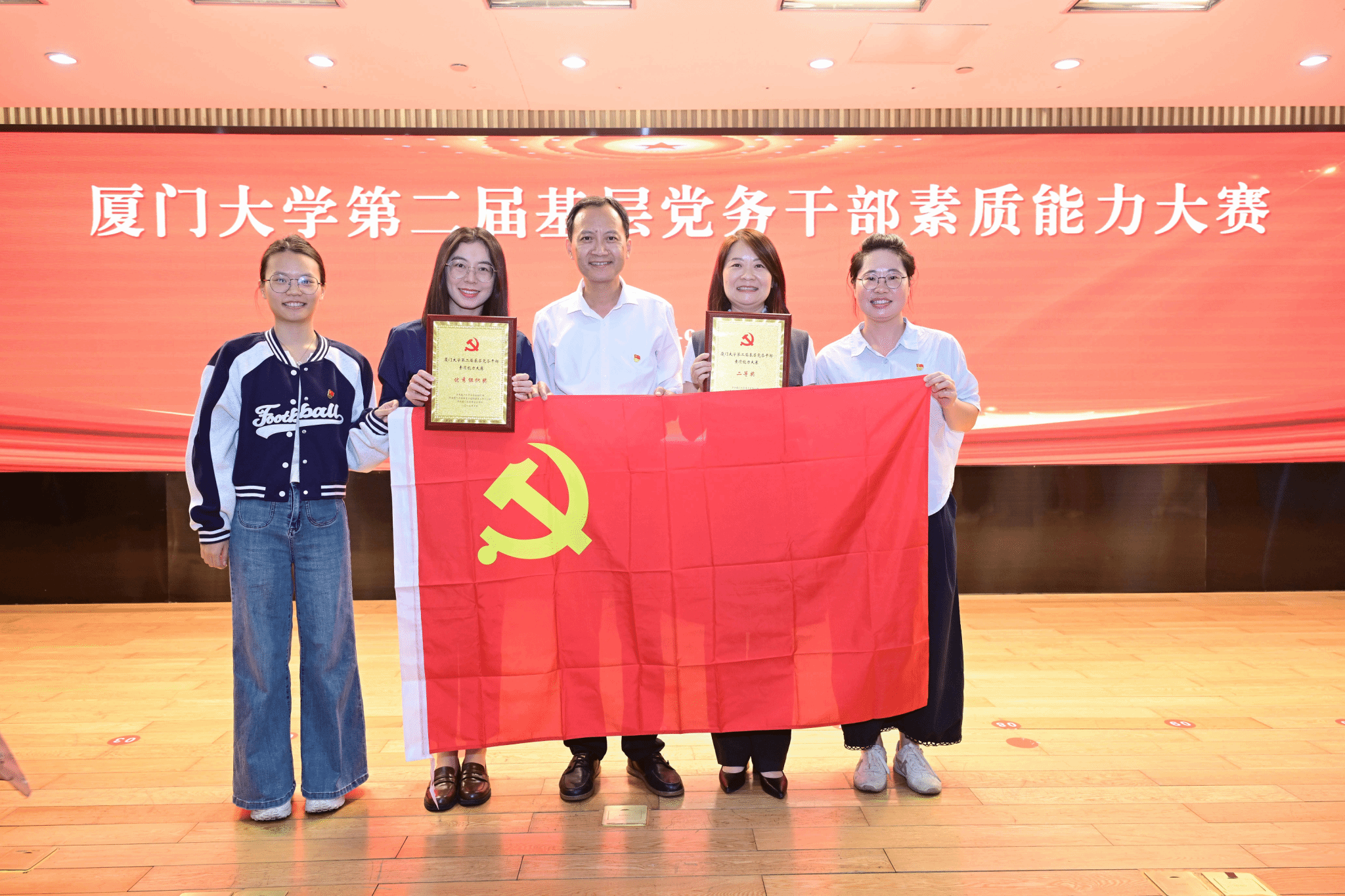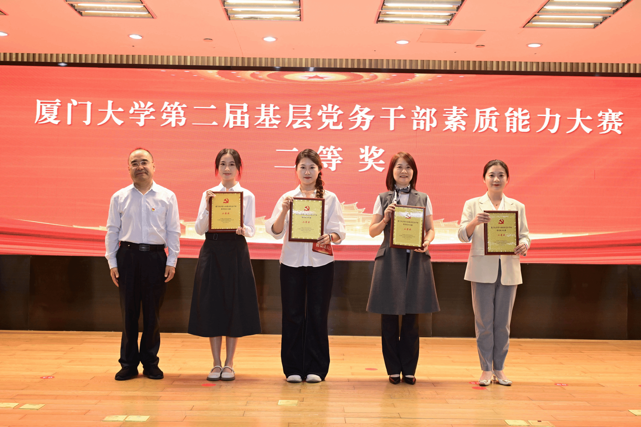 10 月 31 日晚,厦门大学第二届基层党务干部素质能力大赛圆满落幕。经过一个多月的多轮比拼与激烈角逐,医学院代表队凭借过硬的政治素养、出色的党务能力和从容稳健的现场表现,从全校 44 支参赛队伍中脱颖而出,最终荣获大赛二等奖及优秀组织奖,彰显了学院党务干部“党性强、业务精、作风实”的综合素养与专业担当。