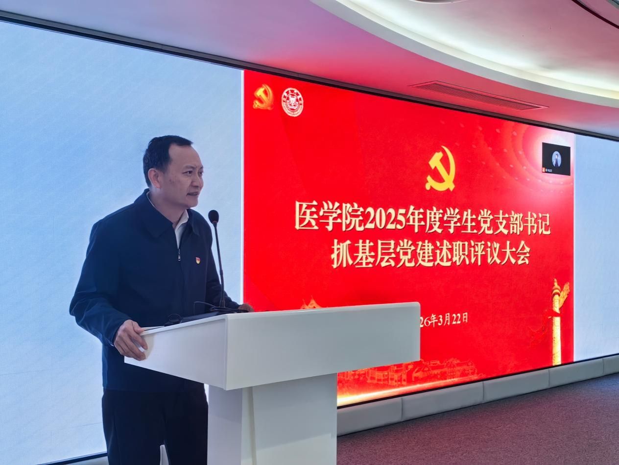 李峰强调,2026年,是推进学院高质量发展的关键之年,各师生党支部要以此次述职评议为契机,正视短板不足、狠抓整改落实,切实扛起基层党建政治责任。一要强化理论武装,持续深化思想政治建设,把党的创新理论融入医学教育教学全过程;二要夯实基层基础,纵深推进党支部标准化规范化建设,不断提升党内政治生活质量;三要聚焦融合赋能,推动党建与医学人才培养、科学研究、临床医疗、社会服务等中心工作深度融合,打造特色党建品牌;四要压实主体责任,党支部书记要切实履行第一责任人职责,带领党员担当作为、奋勇争先,为培养高素质医学人才、推动学院事业高质量发展筑牢党建根基。