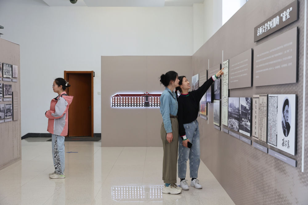 学生参观北京大学“大讲堂之路”展览(2024年3月16日摄)。