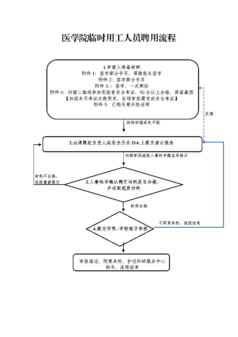 为加强临时用工人员(指科研助理、钟点工等人员,下同)管理,各课题组在聘用临时用工人员时,须遵守学校、学院的要求,按照医学院临时用工人员聘用流程办理相关手续。完成聘用手续的临时用工人员,到校后应参照交流生纳入学院相关部门管理,各课题组承担主体管理责任。如聘用人员离岗,也应参照在职人员提前一周内至人事部门(爱礼楼北楼211室)办理离校手续。