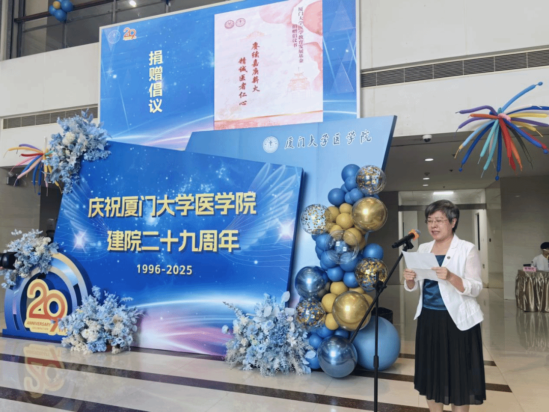 授牌仪式后,副院长谢莉萍发出爱心捐赠倡议。她回顾了2021年百年校庆之际设立的“厦门大学医学教育发展基金”,现已成为助推学院发展的重要平台。以30周年院庆为新起点,学院期待更多师生、校友及社会爱心人士踊跃参与捐赠。学院将严格规范管理每一笔善款,确保资金用在实处、发挥实效,切实助力学院高质量发展。
