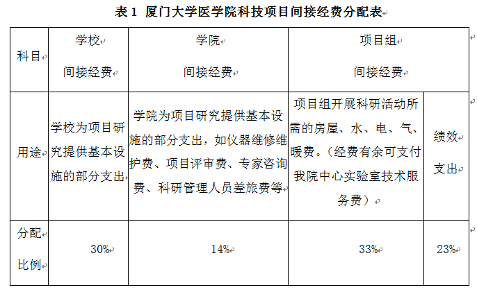 厦门大学医学院科技项目间接经费使用管理规定