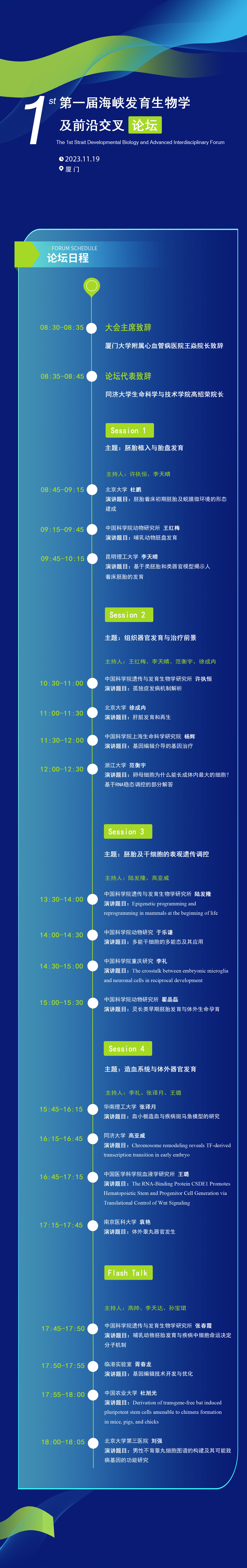 发育异常与多种器官疾病发生存在密切的联系。为了给疾病研究提供新的思路,促进相关基础科研方向的多学科交融,拓展海峡两岸地区相关前沿领域的学术交流,本次会议新增海峡发育生物学及前沿交叉分论坛,邀请国内发育研究的顶尖专家,共同探讨新时期下发育生物学基础研究的前沿问题和未来走向。