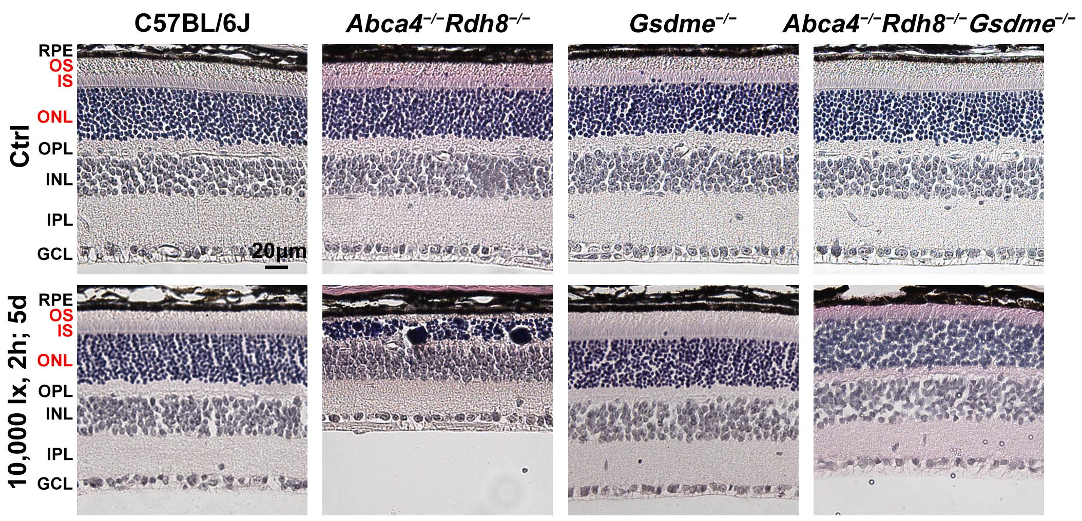 2021年12月29日,老牌主流期刊《Journal of Biological Chemistry》在线发布了吴亚林教授课题组的最新研究成果“Gasdermin E mediates photoreceptor damage by all-trans-retinal in the mouse retina”。该论文揭示了成孔蛋白Gasdermin E在视黄素代谢紊乱诱发感光细胞退化中的作用及其机制,为干性AMD和STGD1治疗提供了新靶点。
