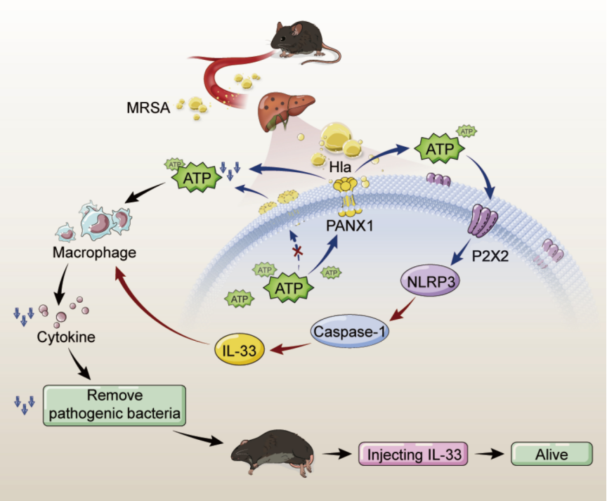 彭志海教授团队一直专注于肝移植相关的基础与临床研究,发现肝移植患者术后感染耐甲氧西林金黄色葡萄球菌(MRSA)的风险增加,本研究揭示了pannexin 1 (PANX1)功能降低的遗传易感性通过降低肝脏宿主固有免疫防御增加了肝移植后MRSA感染的风险,并且通过白细胞介素-33 (IL-33)治疗可降低这种感染风险。