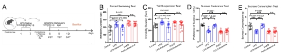 该团队发现Menin的缺失,使Meninpvalb启动子区的转录抑制能力下降,PV表达水平显著上升,导致小鼠抑郁样表型。而回补Menin、降低PV神经元中PV的表达水平均可以改善PV神经元缺失Menin小鼠的抑郁样行为。该研究团队接下来发现抗抑郁药物氯胺酮(Ketamine)在LPS抑郁模型上可以起到快速的抗抑郁效果,但在缺失Menin小鼠失去了抗抑郁作用。同时该团队人员还发现LPS小鼠脑中Menin的表达水平降低,而该小鼠给予氯胺酮治疗后,Menin的表达水平显著回升。通过探索机制,他们发现氯胺酮可以通过抑制蛋白激酶APKA)的激酶活性,降低后者对Menin的磷酸化来稳定Menin的水平,从而维持氯胺酮的抗抑郁功能。张杰教授团队的研究结果证明了Menin在抑郁症中的关键作用,并证明Menin是氯胺酮抗抑郁功能的关键蛋白。
