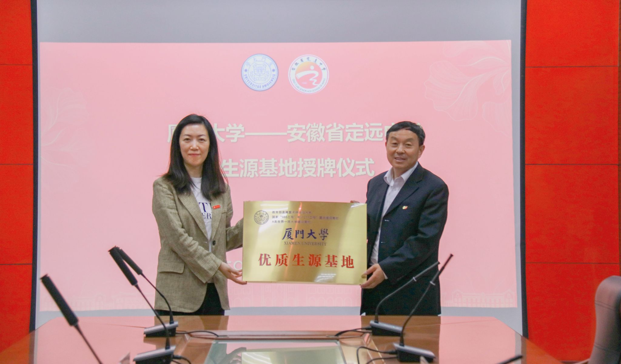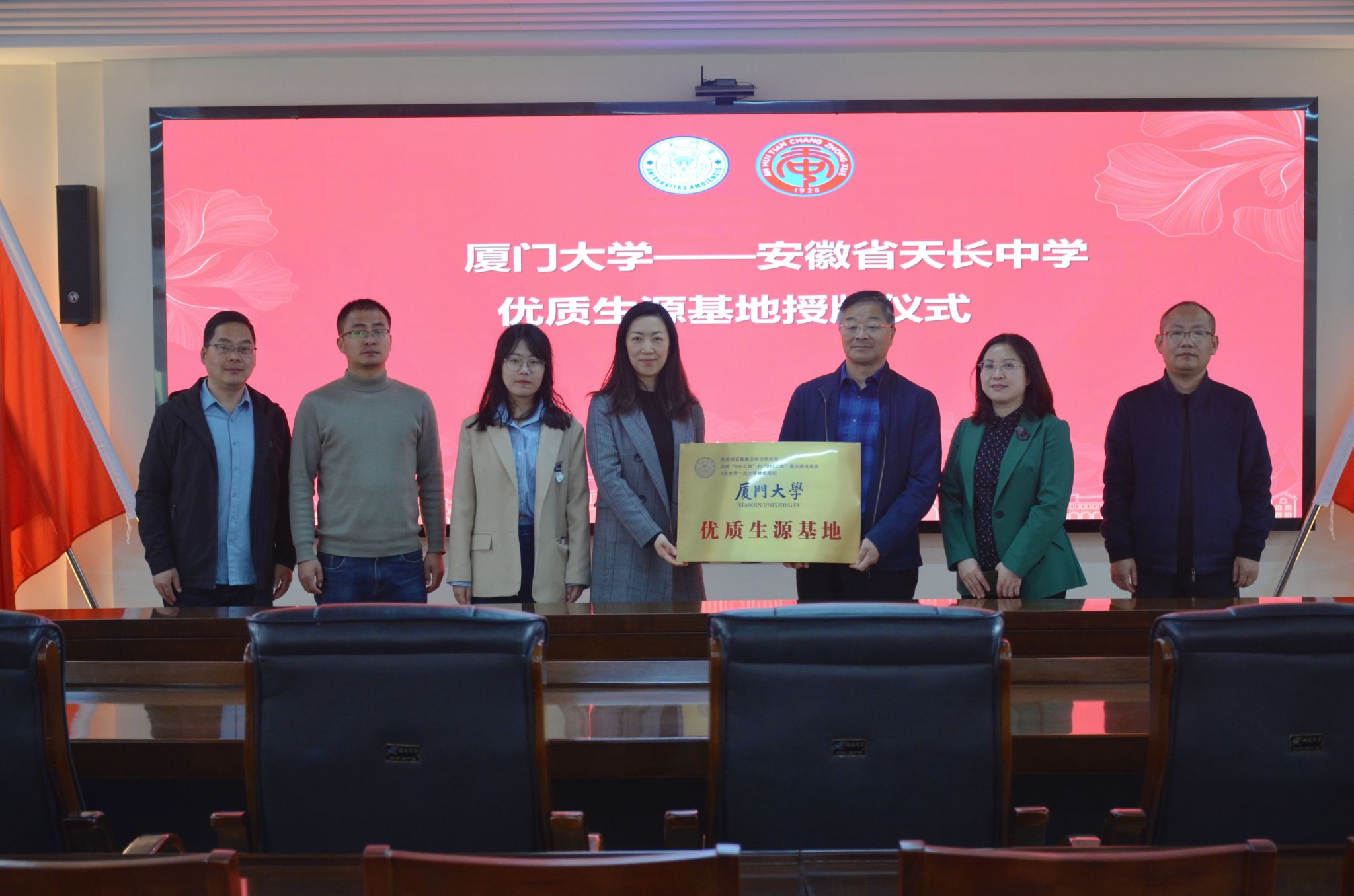 为进一步提高我校在安徽省的生源质量,4月12日至15日,厦门大学安徽招生宣传组赴安徽省滁州市、淮北市开展招生宣传活动。此次安徽招生宣传组由医学院党委副书记辛晓丹老师带队,吴亚林教授、团委许洋老师、教务办朱雅洁老师三人随行,分别为安徽省天长中学、定远中学、淮北市第一中学三所安徽省示范高中进行“优质生源基地”授牌仪式、“教授进中学”讲座及招生宣讲。天长中学张兆红校长、定远中学戴茂俊校长、淮北市第一中学马颖校长分别带领所在中学教师代表,与我校招生宣传组开展座谈会,并接受“厦门大学优质生源基地”授牌。