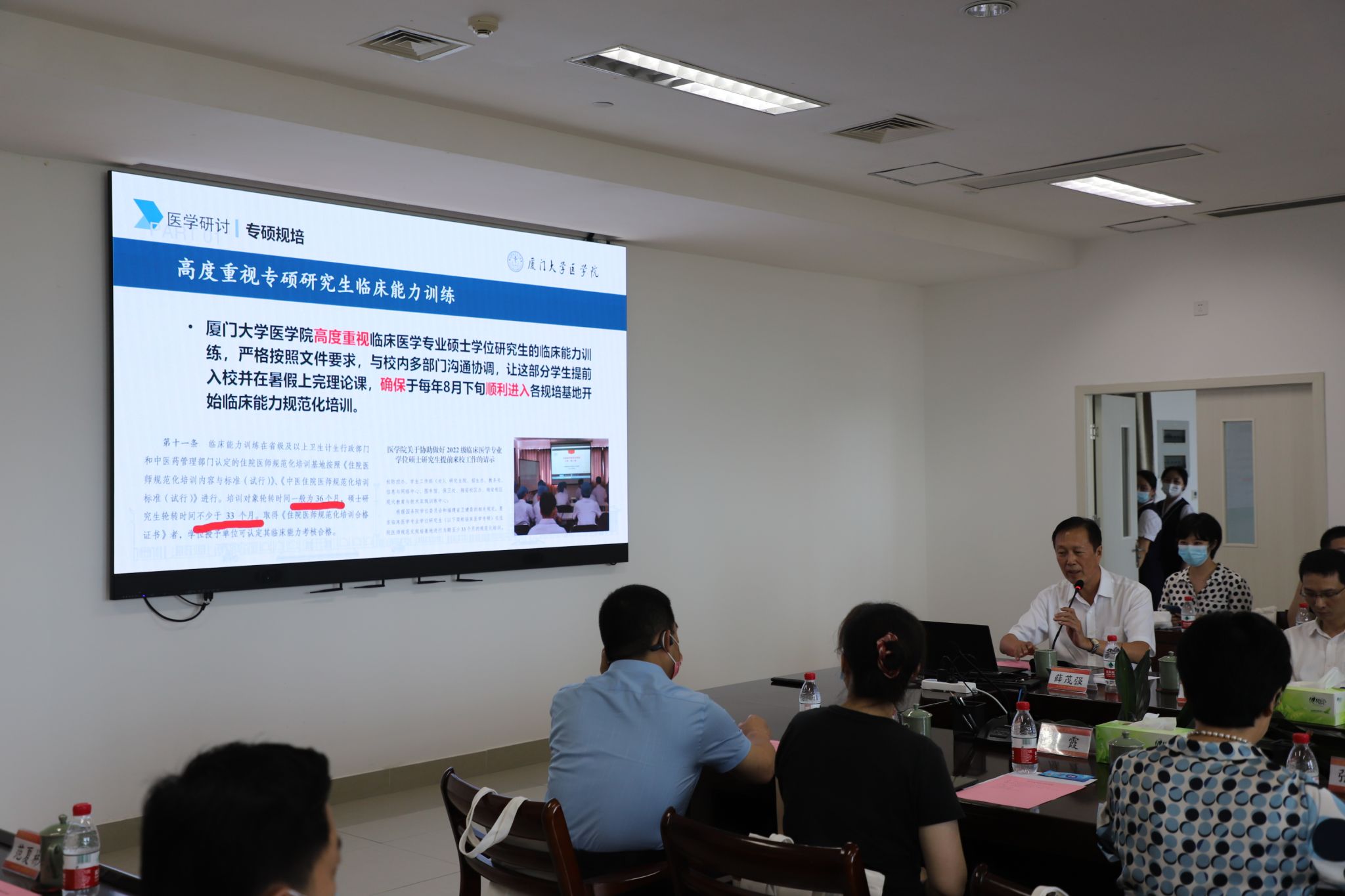 韩院长就医院提出的问题与大家展开讨论并给予指导。最后,他指出,各医院要在保证完成基本人才培养任务的基础上,进一步讨论如何多举措提高人才培养质量。他强调,医院要高度重视专业硕士学位研究生临床能力规范化培训,要花大力气提高专硕规培结业考试的通过率。