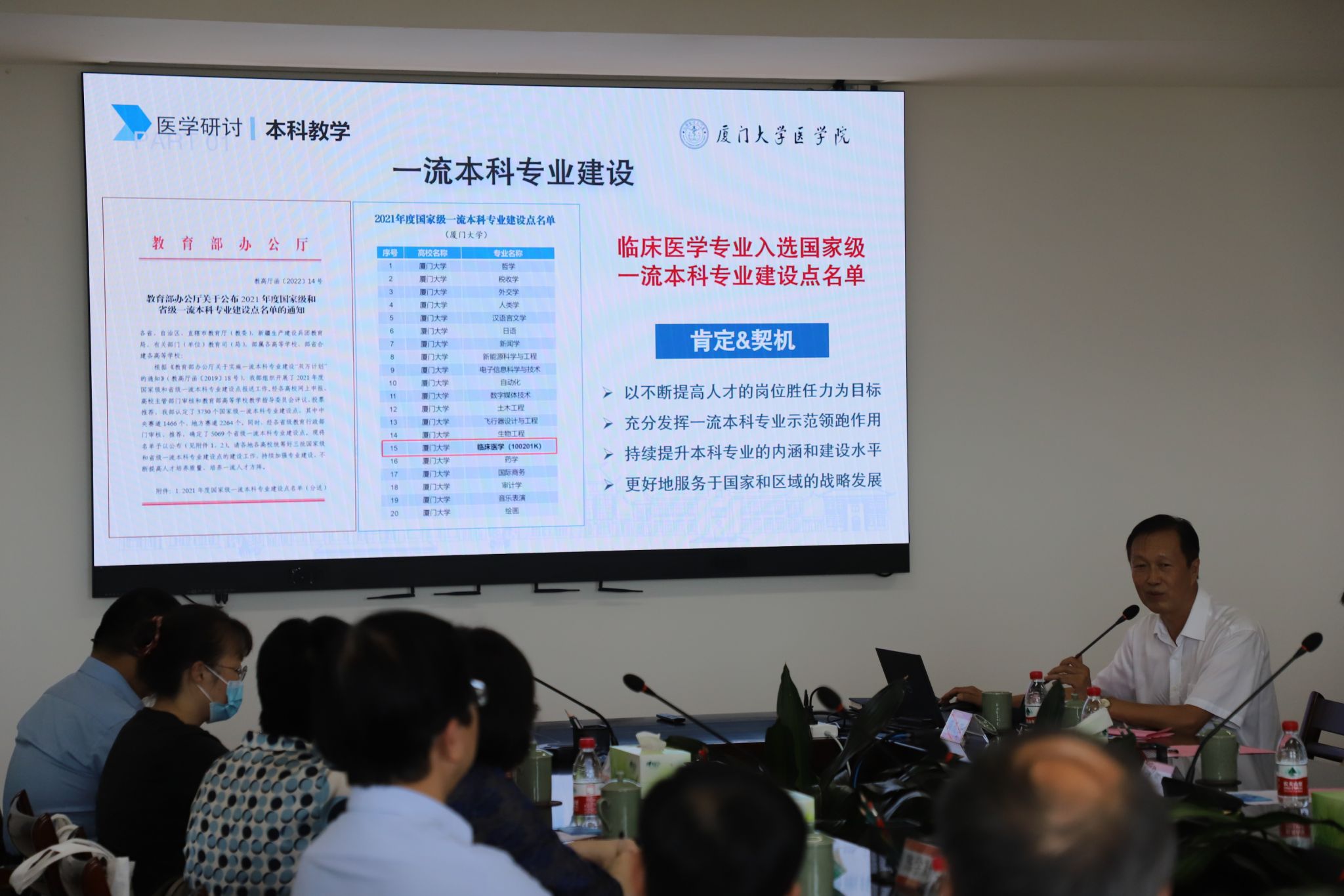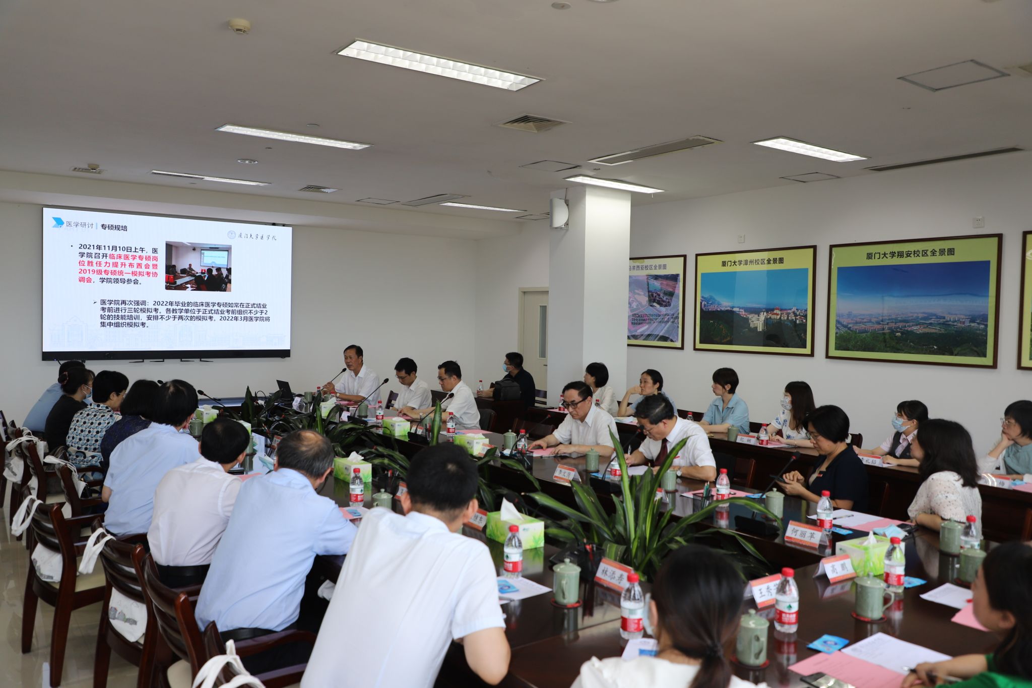 6月20日下午,医学院在翔安校区德旺图书馆A909会议室召开2022年医学教育教学研讨会,医学院领导班子成员,附属医院、教学医院领导及教学部门负责人、临床教师代表等参加会议。会议由副院长薛茂强教授主持。