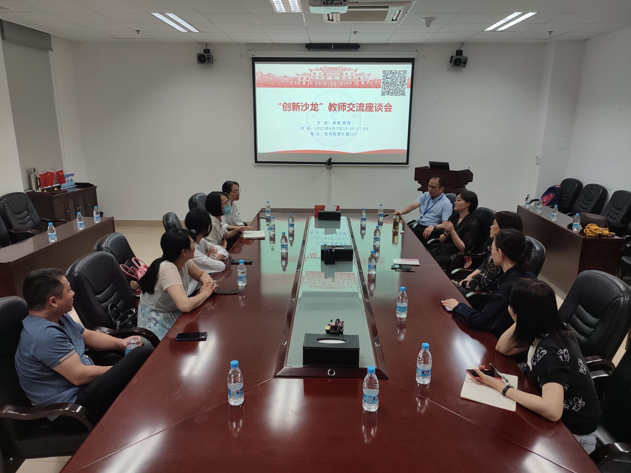 6月7日下午,医学院在爱礼楼104成功举办了“创新沙龙”教学培训活动,全院教师以及教学秘书们线下参加会议,同时面向附属医院临床教师进行了线上直播。此次沙龙活动由医学院副院长薛茂强教授、教务办主任李晴副教授主持。