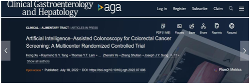 此外,消化病学系、消化道肿瘤早诊早治亚专科还分别与香港中文大学、吉林大学以及南方医科大学深圳医院、厦门长庚医院等合作题为《Artificial Intelligence-Assisted Colonoscopy for Colorectal Cancer Screening: A Multicenter Randomized Controlled Trial》(发表在Clinical gastroenterology and hepatology杂志,共同第一作者)和《A Novel Convolutional Neural Network Model as an Alternative Approach to Bowel Preparation Evaluation Before Colonoscopy in the COVID-19 Era: A Multicenter, Single-Blinded, Randomized Study》(发表在Am J Gastroenterol杂志,共同通讯作者)的多中心临床应用研究,将人工智能用于辅助结直肠癌/腺瘤筛查以及结肠镜检查前评估肠道准备质量的评估,进一步提高了结直肠镜检查患者的肠道准备质量和的腺瘤发现率。