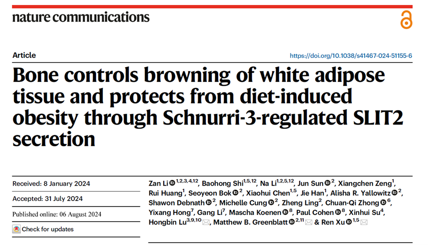 1.“Bone controls browning of white adipose tissue and protects from diet-induced obesity through Schnurri-3-regulated SLlT2 secretion”