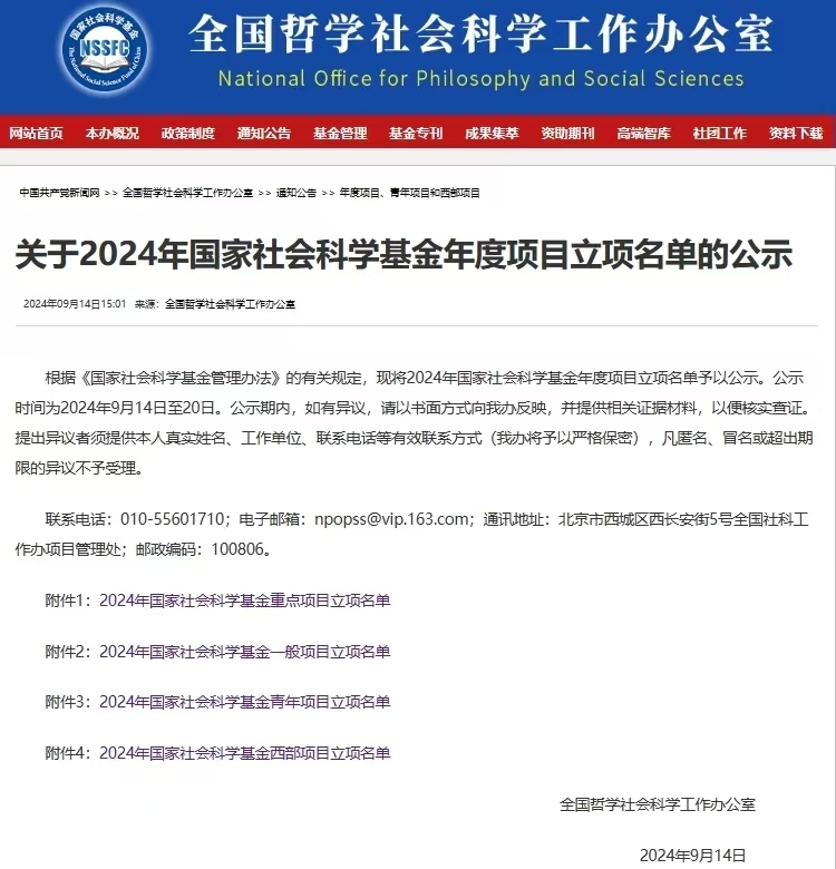 9月14日下午,全国哲学社会科学工作办公室公布2024年国家社会科学基金年度立项名单,我院马永慧副教授获得国家社会科学基金一般项目立项资助。这也是我院教师自2016年国家社科基金青年项目后,首次获得国家社科一般项目资助。