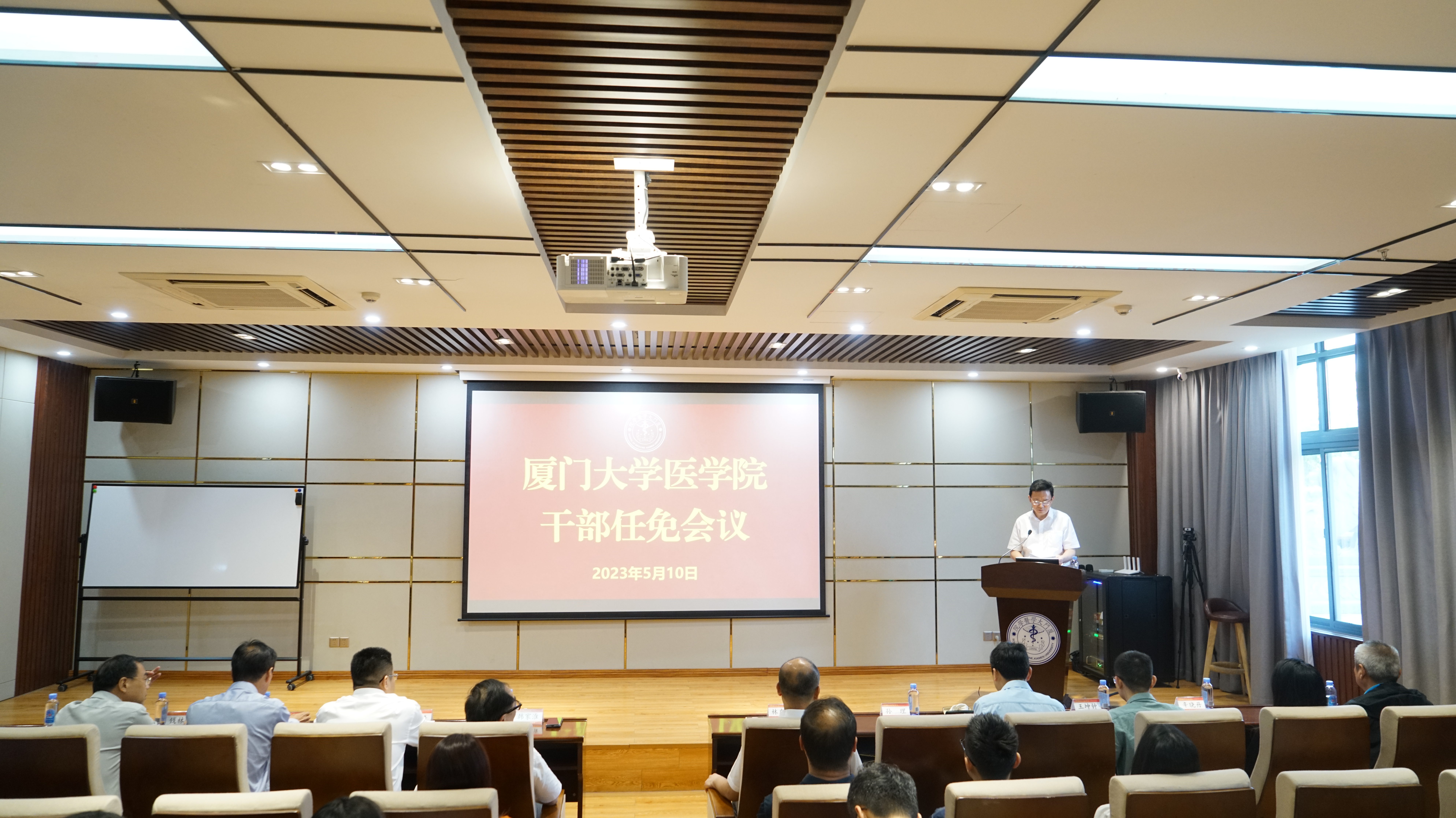 2023年5月10日下午,厦门大学医学院党委书记任免宣布大会在成义楼102报告厅召开,校党委常务副书记林东伟,校党委常委、组织部部长、统战部部长孙理,医学院党政领导班子成员、学院党委委员、系部中心和行政部门负责人、教工党支部书记、科级干部、辅导员等参加会议。会议由孙理主持。