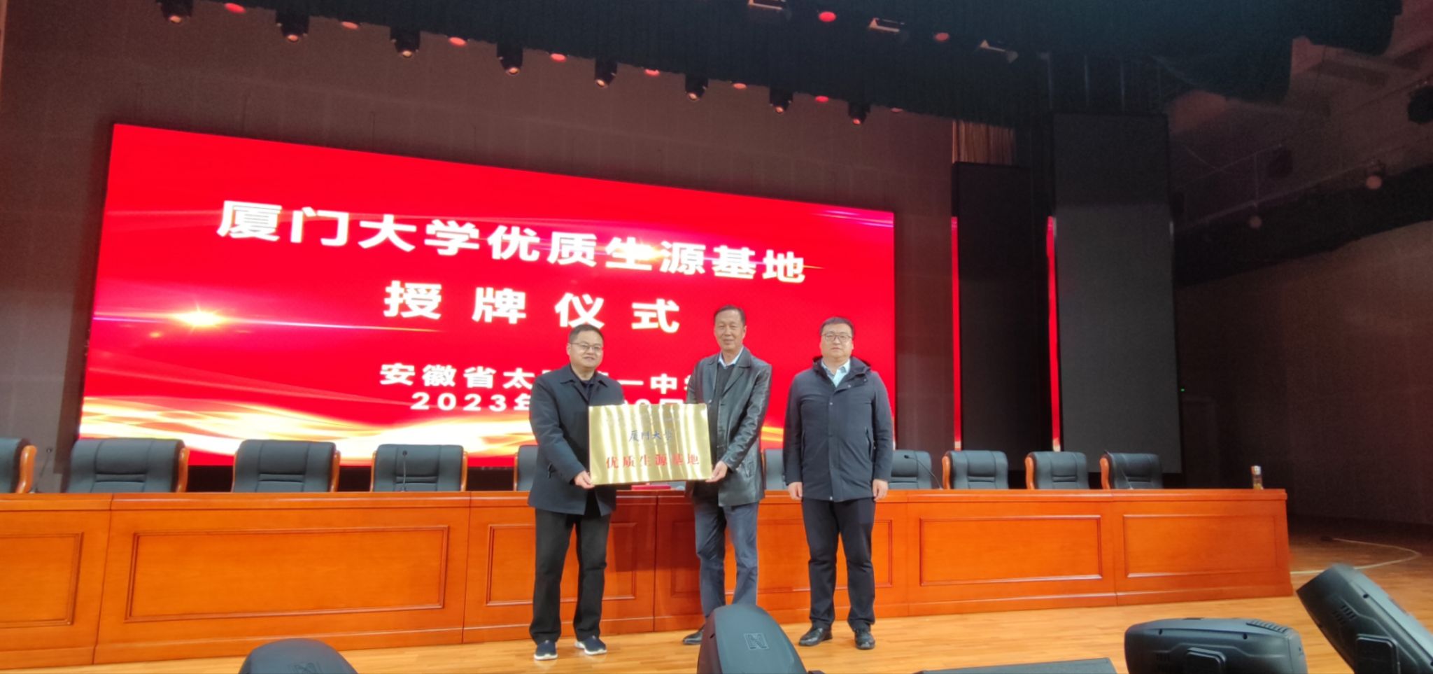 为更好地展现我校学科专业和本科人才培养优势特色,加强与安徽省重点生源中学的交流合作,吸引优质生源,3月21日至22日医学院副院长薛茂强教授带队赴安徽省,为安徽省庐江中学、舒城中学及太和一中三所学校授牌“厦门大学优质生源基地”并举办招生宣讲。医学院教务办主任李晴、教学秘书朱雅洁随行。