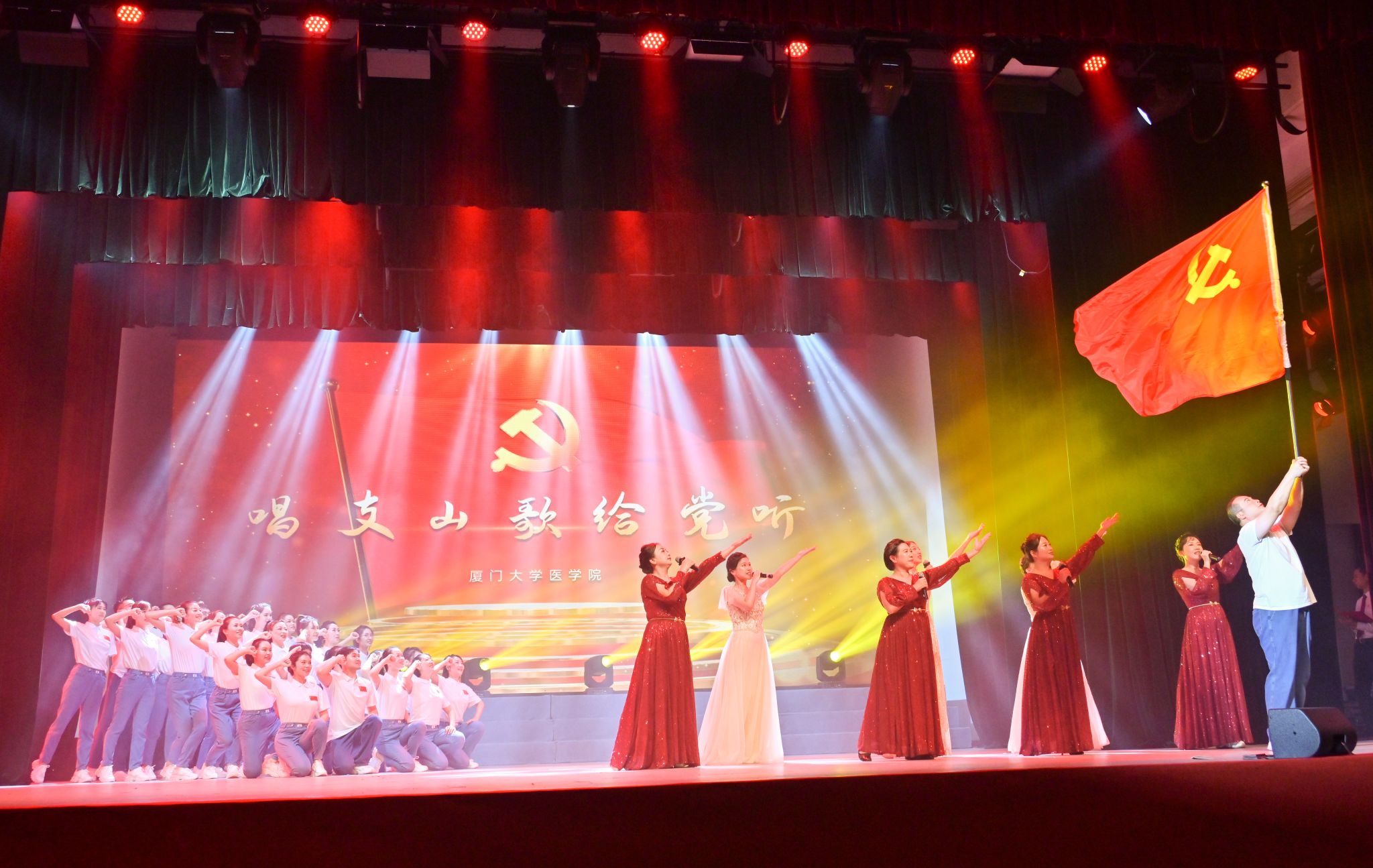 2022年11月12-13日,厦门大学举行“礼赞二十大 建功新时代”教职工文艺汇演。医学院组织的38人表演团,在13日的演出中,第一个出场,以一首饱含深情的《唱支山歌给党听》、一段欢快激昂的舞蹈,赢得全场观众热烈的掌声,并最终荣获三等奖。