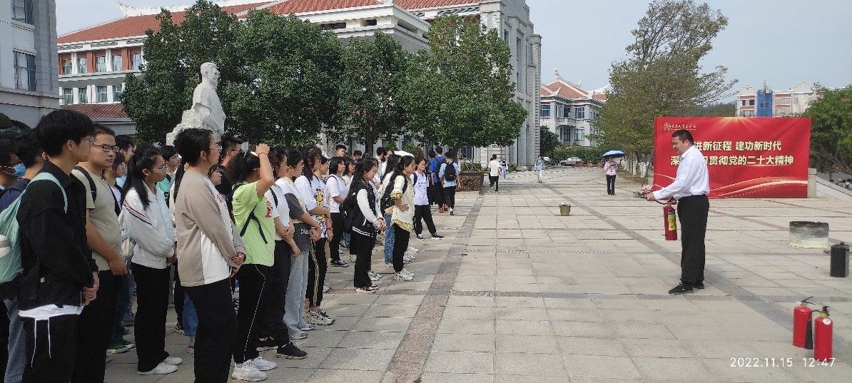 11月15日,学院举行了消防灭火演练、逃生舱模拟逃生演练、虚伪仿真灭火演练,活动得到了校区保卫办、南强物业的大力支持。