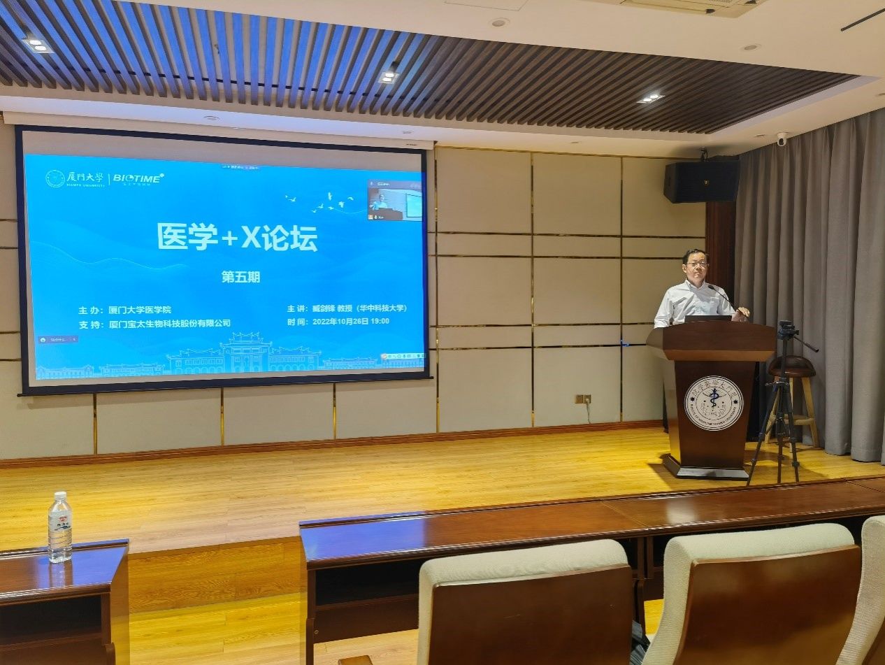 “医学+X论坛”是由厦门大学医学院主办,厦门宝太生物科技股份有限公司大力支持的交叉学科交流平台。论坛每月举办一次,旨在促进医学与其它学科的交叉融合,推动厦门大学交叉学科的发展。