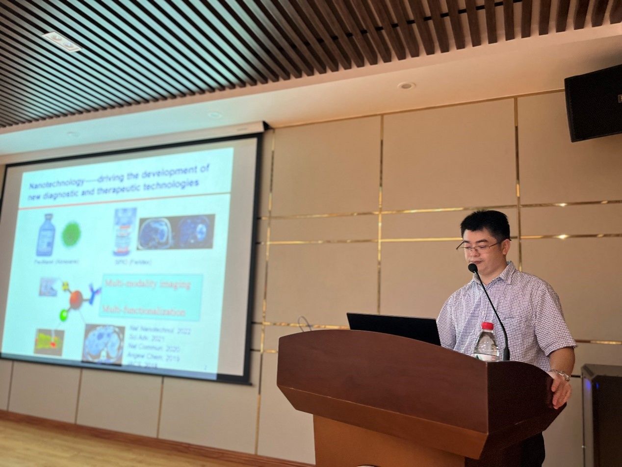 本次报告,刘刚教授以“分子影像探针设计及临床转化研究”为主题,做了一场精彩且丰富的学术报告。刘教授长期围绕高灵敏度、高特异性多功能分子影像探针的可控设计、构建及医学应用评价等方面开展研究工作,发展了一系列新型高灵敏的磁学、光学、光声分子影像探针,提高细胞、分子成像示踪监测的精确性;设计合成了新颖的诊疗一体化多功能纳米材料,探索无创靶向药物/基因治疗及实时影像监测;优化等离子光热/光动力协同治疗方法并增强治疗效果,为实现个体化医疗模式提供条件。刘教授的讲座引起与会师生浓厚的兴趣,大家就分子探针在临床的应用问题进行了深入的交流和探讨。