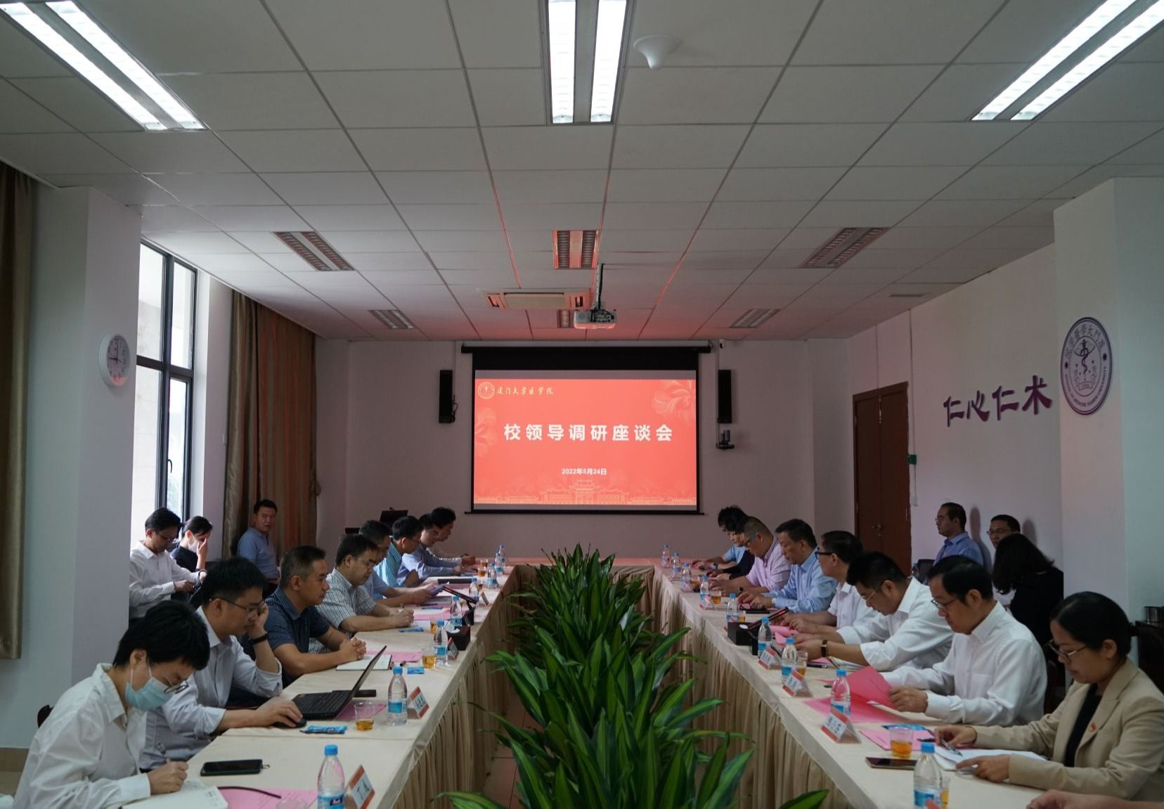 5月24日上午,厦门大学校长张宗益,副校长周大旺,学校办公室、人事处/党委人才工作办公室、党委政策研究室/发展规划办公室、研究生院、教务处、科技处等部门负责人一行到我院调研,与学院领导班子成员和学科带头人、教师代表等座谈交流。学院党委书记陈怀锋主持调研座谈会。