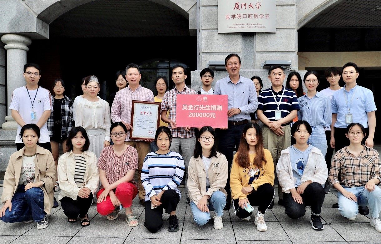 吴金行先生说,自己很荣幸在厦大百年校庆之年被EMBA(百E班)录取,在校学习期间深受校主嘉庚精神的感动和鼓舞。陈嘉庚先生为了实现心中的教育宏愿,倾尽全力苦心经营厦大,“宁可变卖大厦,也要支持厦大”。受此感念,他也想为学校教育发展略尽绵薄之力。他表示,今年恰逢厦门大学医学院口腔医学系成立5周年,自己也专注投资口腔连锁医院10周年,今天为厦门大学口腔医学系捐赠20万元,希望能助力学生学习,并支持口腔学科发展,也祝愿口腔医学系越办越好。
