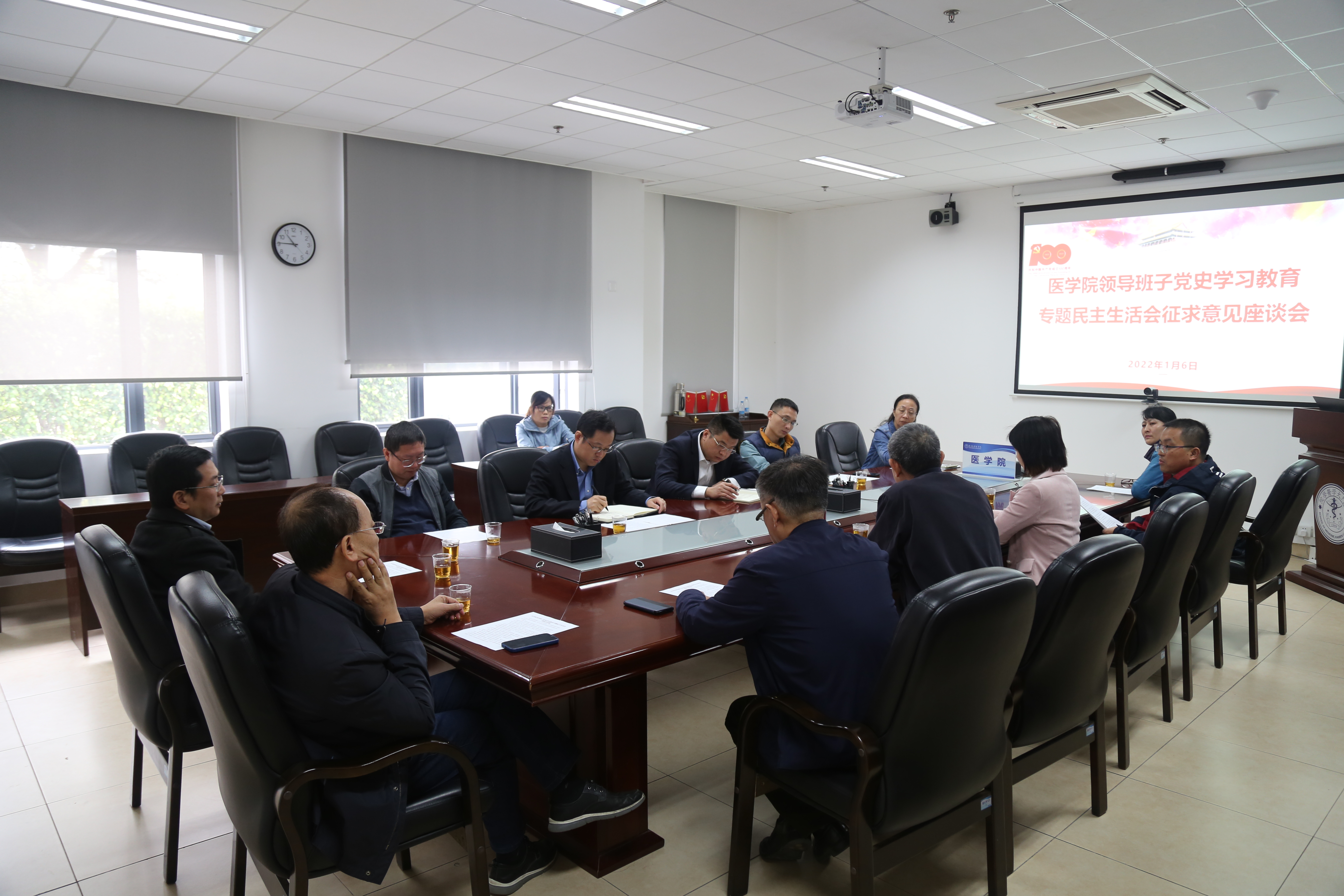 根据《关于认真开好厦门大学中层以上党员领导干部党史学习教育专题民主生活会的通知》精神,按照《厦门大学医学院领导班子党史学习教育专题民主生活会方案》安排,1月6日上午,医学院党委在爱礼楼103召开教工征求意见座谈会。医学院党委书记陈怀锋、党委副书记王坤钟、副院长李炜,各系所、研究中心、行政等15名教工代表参加了本次会议。