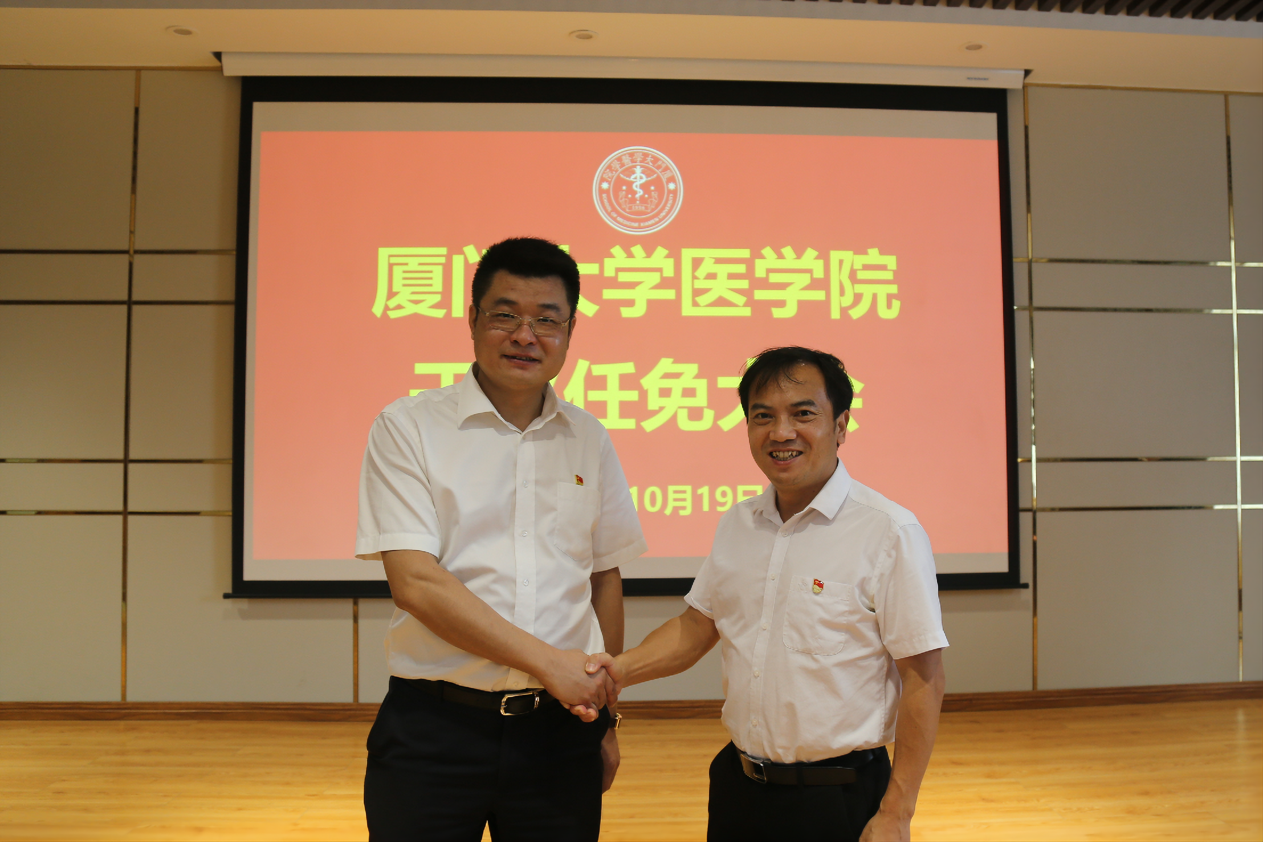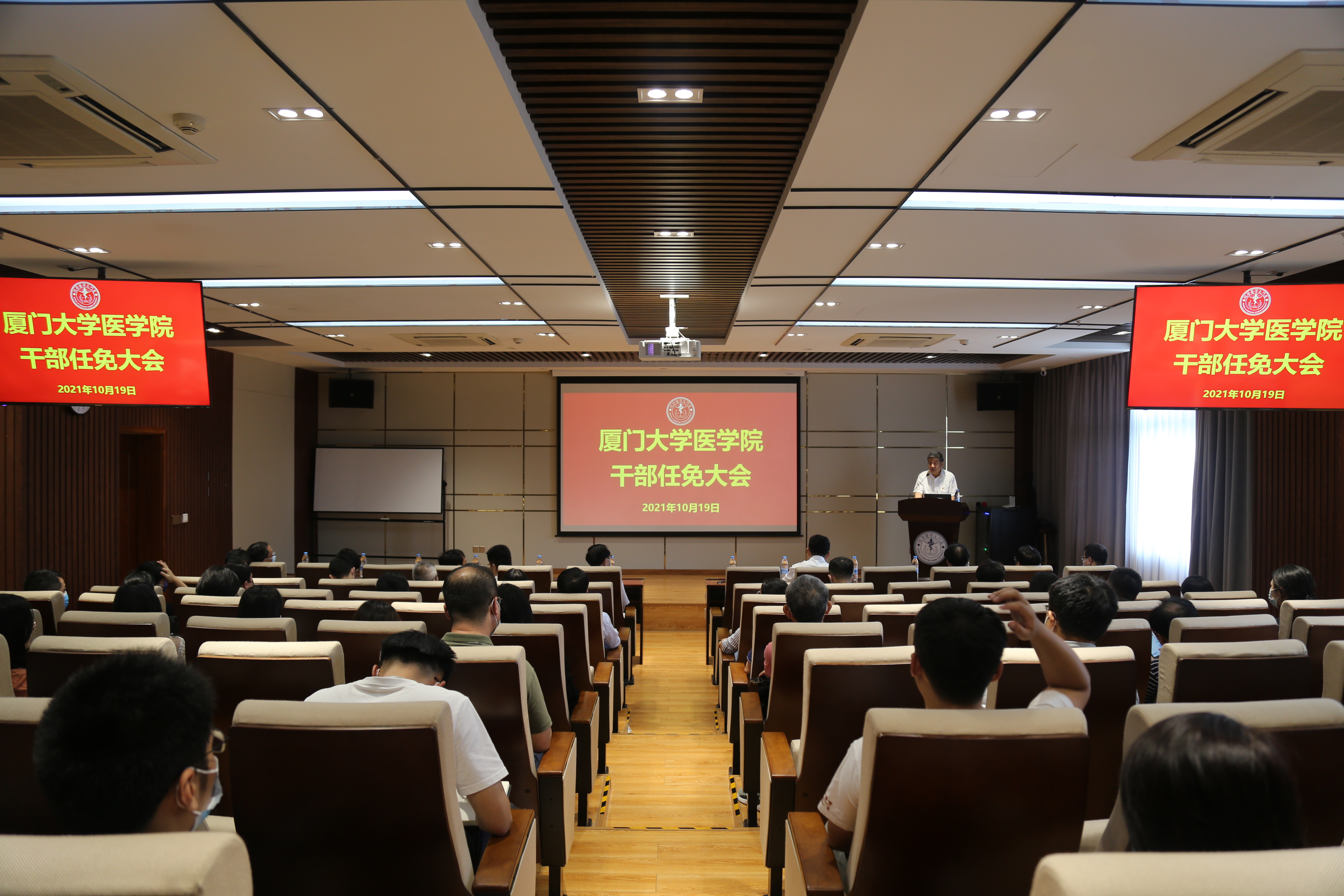 2021年10月19日下午,厦门大学医学院党委书记任免宣布大会在成义楼102报告厅召开,校党委副书记、纪委书记全海,校党委常委、组织部部长孙理,医学院党政领导班子成员、系部中心和行政部门负责人、科级以上干部、辅导员、党支部书记、支部委员等参加会议。会议由孙理主持。
