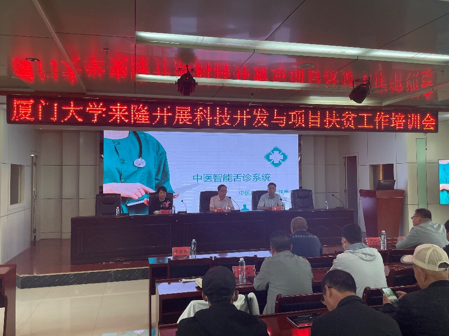 此次工作主要包括中医专业培训与交流,同时为隆德县各村卫生室捐赠“中医智能舌诊设备”50台,设备中提前安装了由厦门大学医学院与厦门妙机智能有限公司共同研发的“乡医通”(中医舌诊智能系统)应用系统。针对这个智能辅助诊疗设备的使用,奚胜艳副教授一行人在县人民医院会议室对乡村医生们进行集中培训,培训会由隆德县卫生健康局副局长、县人民医院院长李敏强主持。奚胜艳副教授针对中医智能舌诊系统展开了详细的背景介绍及应用培训。该系统由厦门大学医学院王彦晖教授主持研发,历经1年余的前期筹备与反复调适,集结了王彦晖教授近40年的学术思想与经验总结,是一次中医理论知识与智能应用的深度结合。