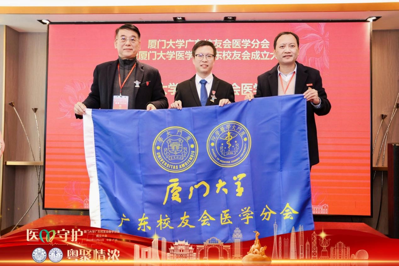 厦门大学广东校友会、医学院领导为新任理事会成员授旗授牌、颁发聘书,标志着新一届理事会的正式成立。
