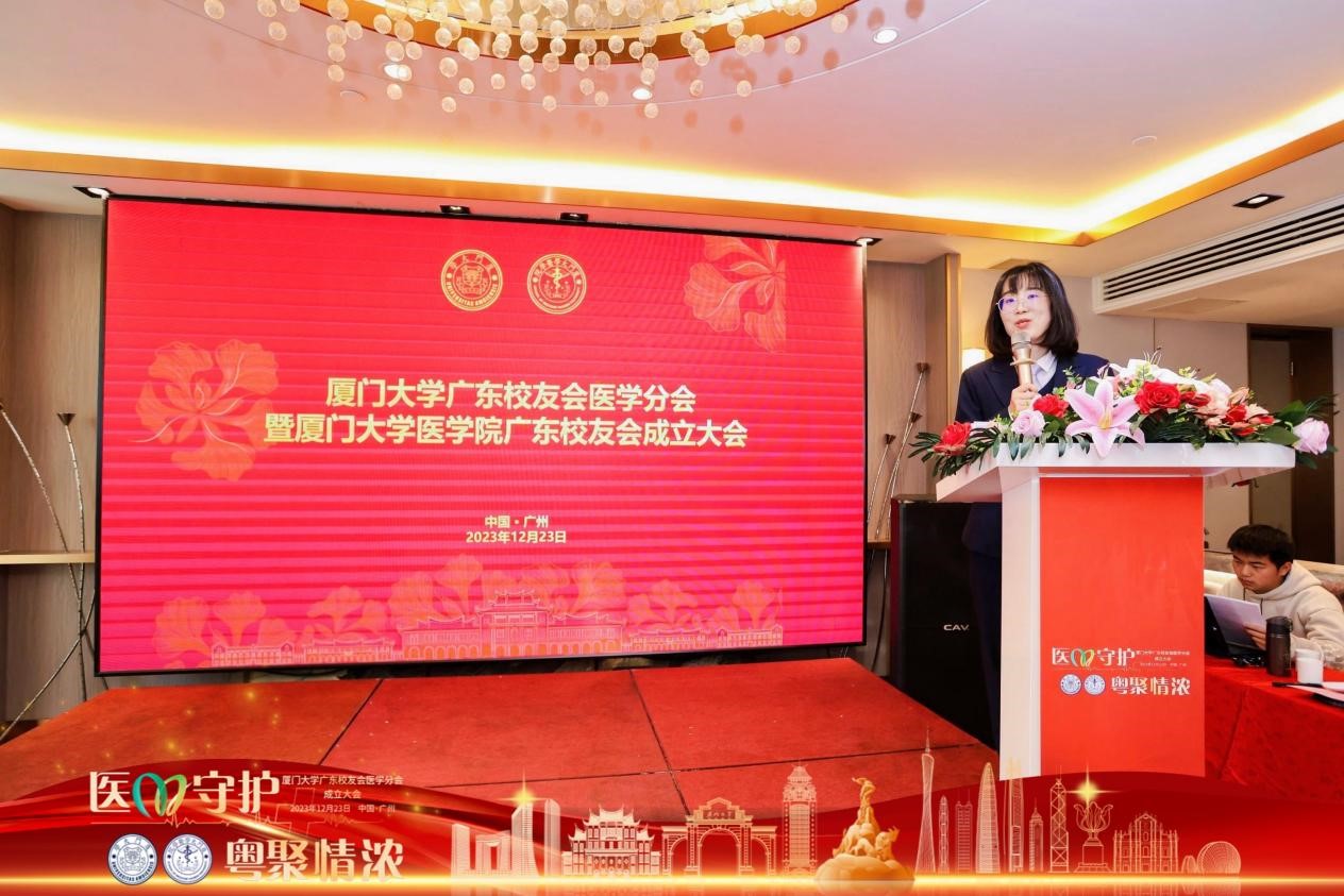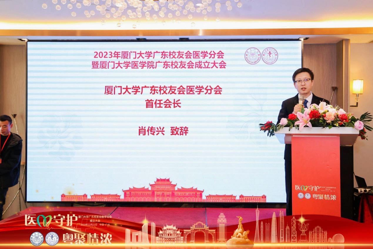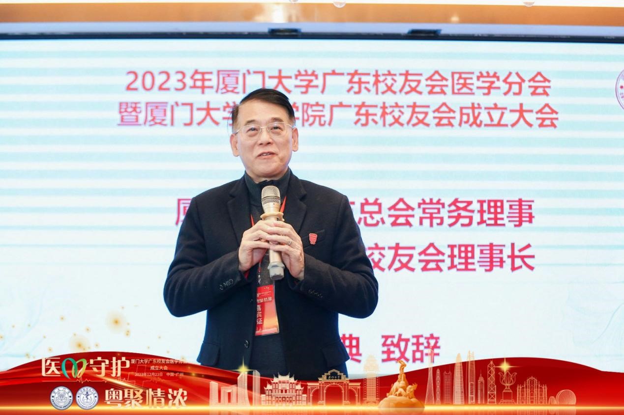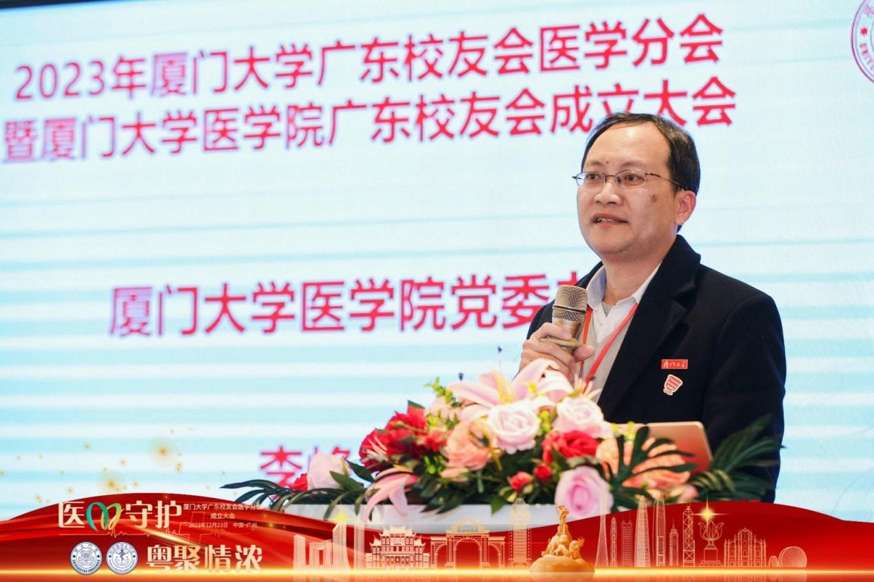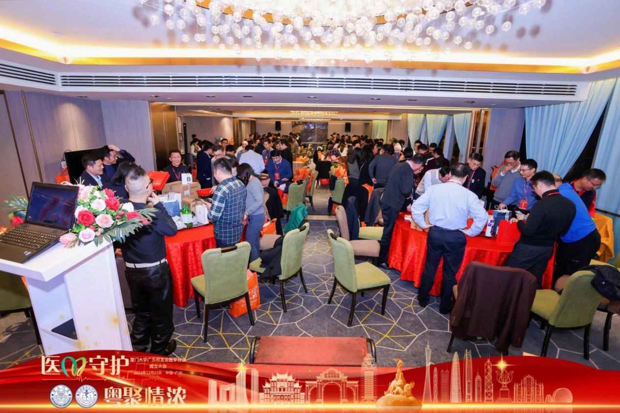 2023年12月23日下午,厦门大学广东校友会医学分会暨厦门大学医学院广东校友会成立大会在广州顺利举行。厦门大学广东校友会理事长黄国典,常务副理事长高碧、刘健、黄国林、刘启亮,厦门大学医学院上海校友会副会长马全明和厦门大学医学院党委书记李峰,副院长薛茂强、党委副书记王坤钟,学院党委委员、中医系副主任文磊,健康医疗大数据国家研究院副院长李奇渊,口腔系副主任陈勇,学院辅导员王明辉,广东校友会理事会成员及兄弟学院校友会代表等出席大会。医学院在粤百余名校友齐聚一堂,畅叙母校情谊,共同见证厦门大学广东校友会医学分会暨厦门大学医学院广东校友会的成立。
