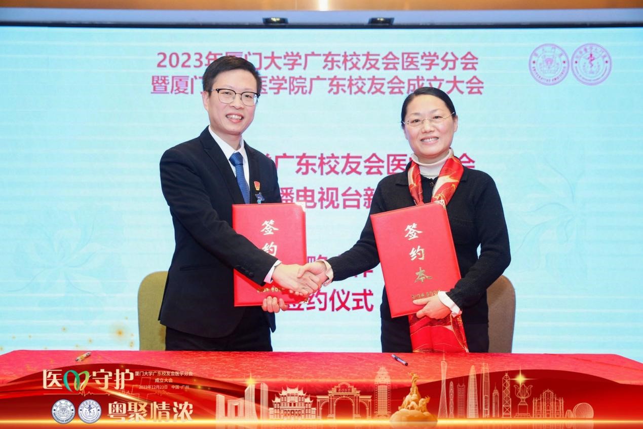 会上,厦门大学广东校友会医学分会暨厦门大学医学院广东校友会与广东广播电视台《品牌广东》全媒体共建单位举行了战略合作框架签署仪式,旨在促进双方资源共享、优势互补,共同推动医学事业和品牌建设的发展。
