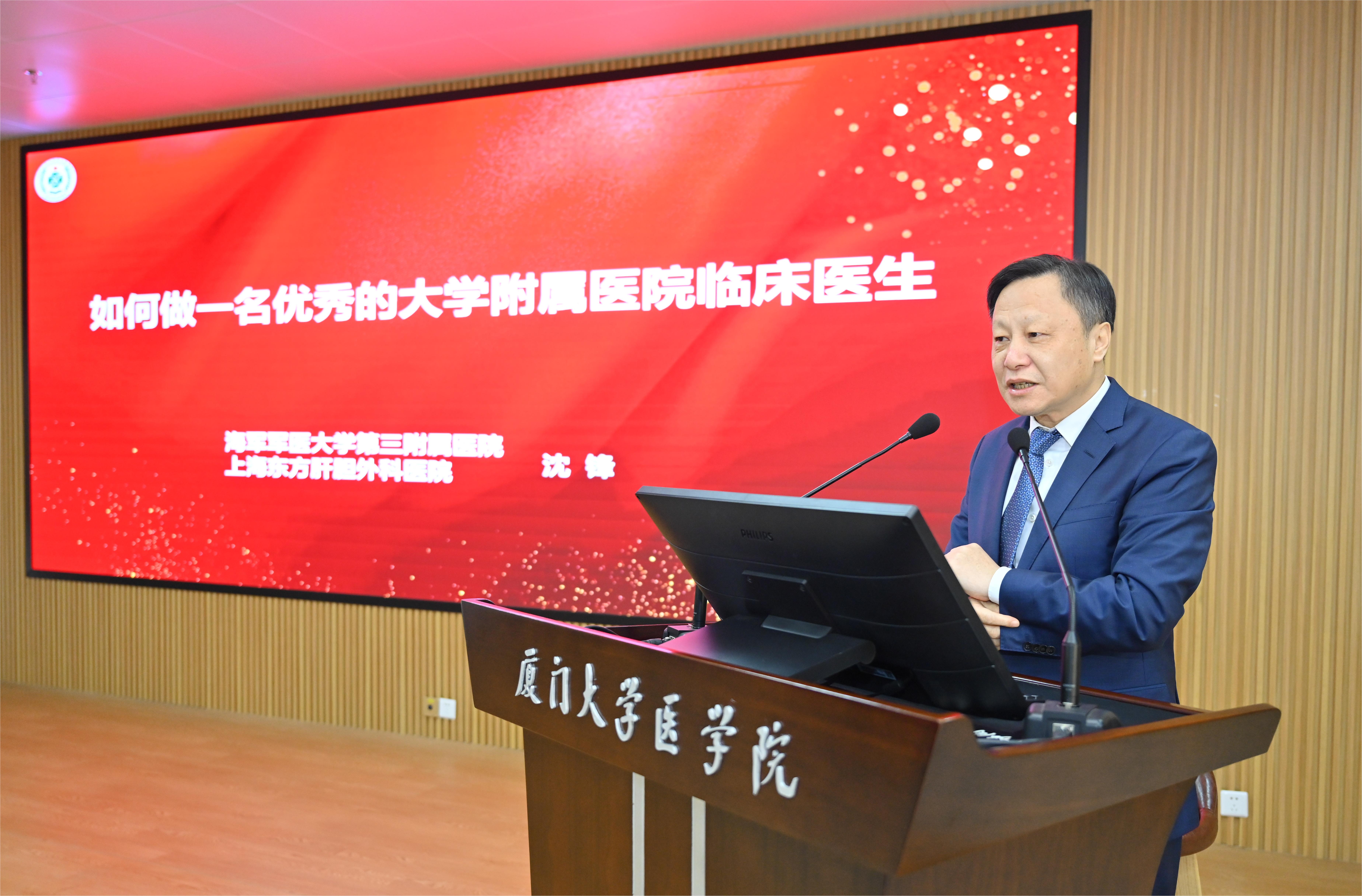 沈锋以《如何做一名优秀的大学附属医院临床医生》为题作立德树人报告,结合自身实际,分享了在医德医风、师德师风、教书育人、科学研究、临床实践中的心得体会,为新进厦大医科人树立榜样。